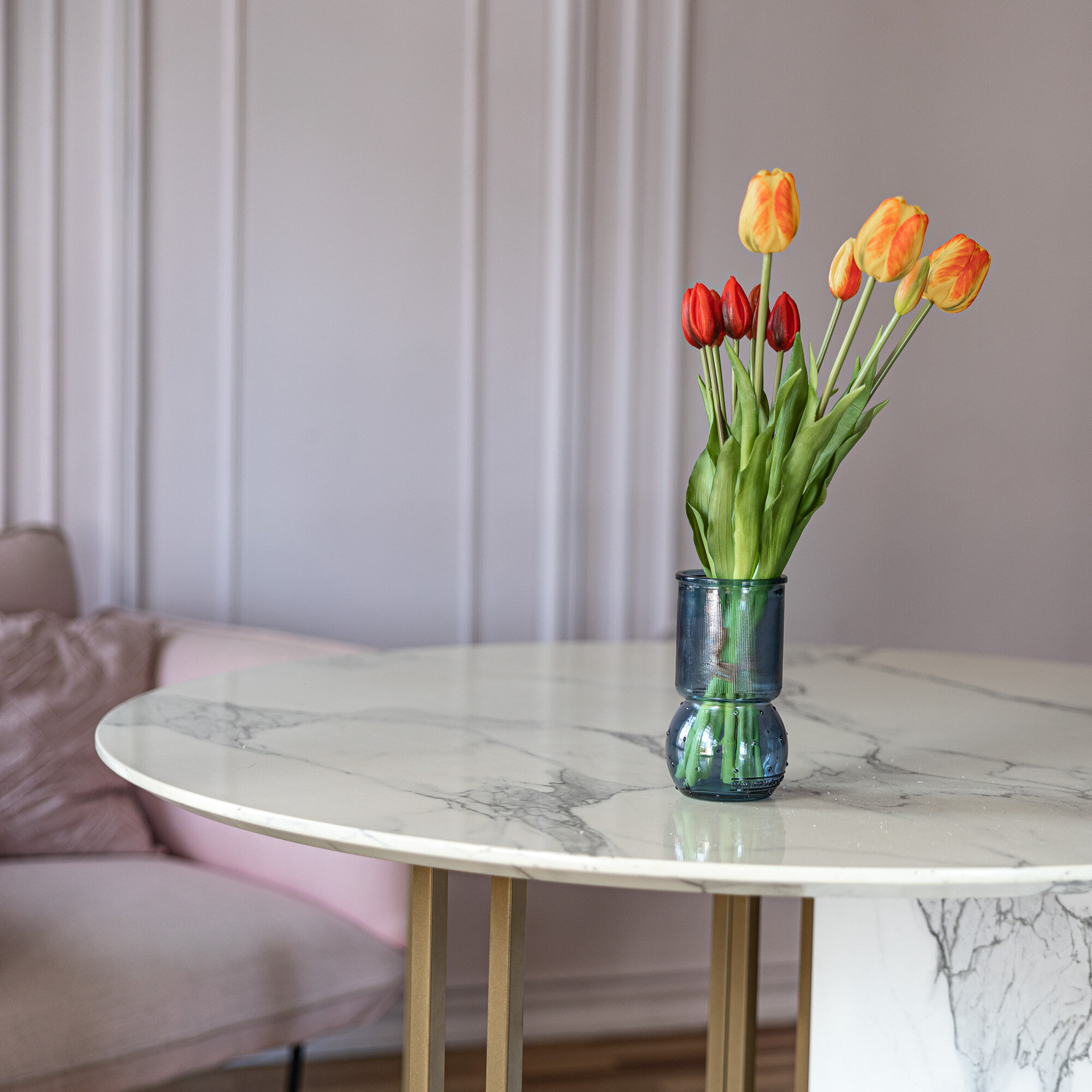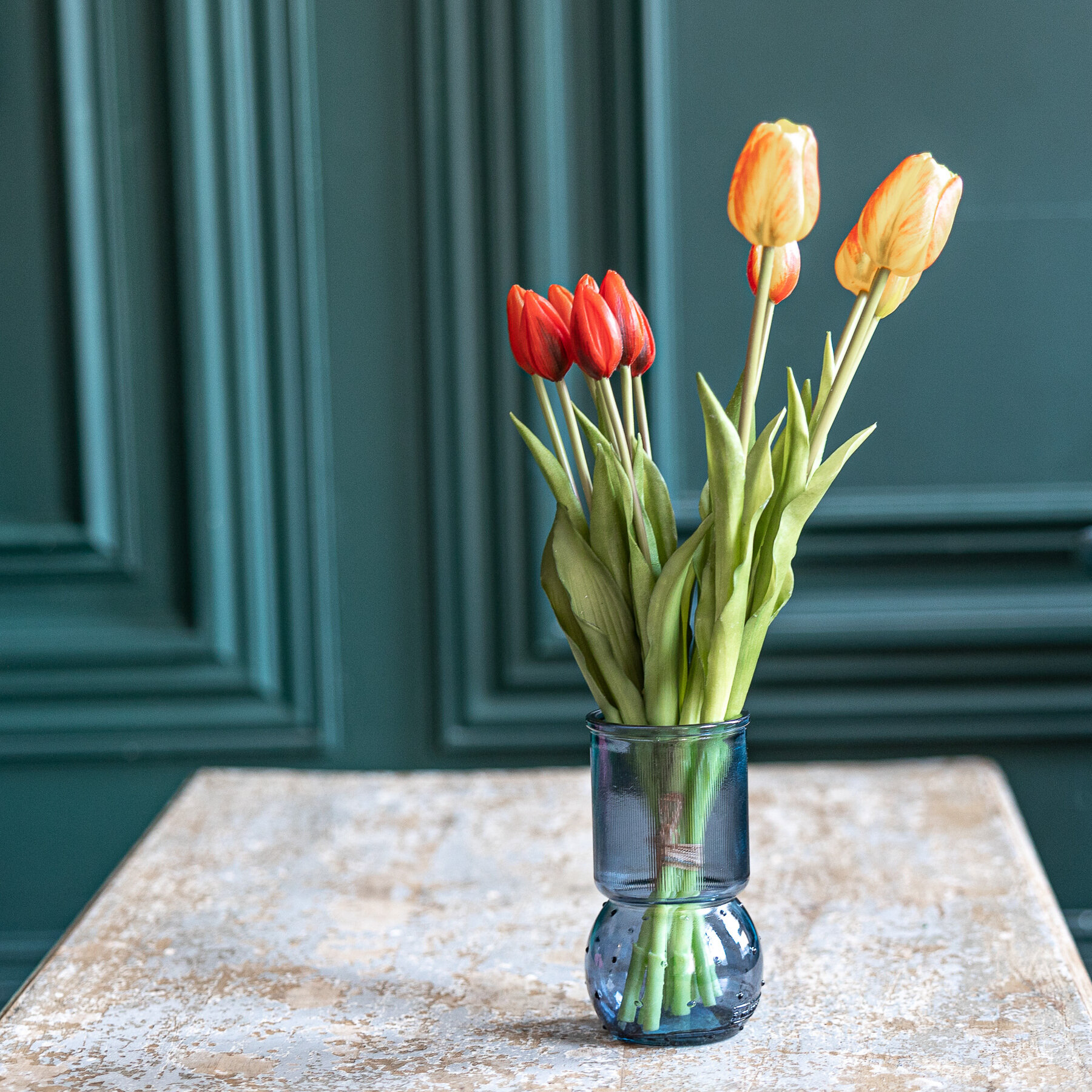 Ваза стеклянная DENIA San Miguel 17 см. для цветов и сухоцветов прозрачная интерьерная Цвет: серо-синий интересное: