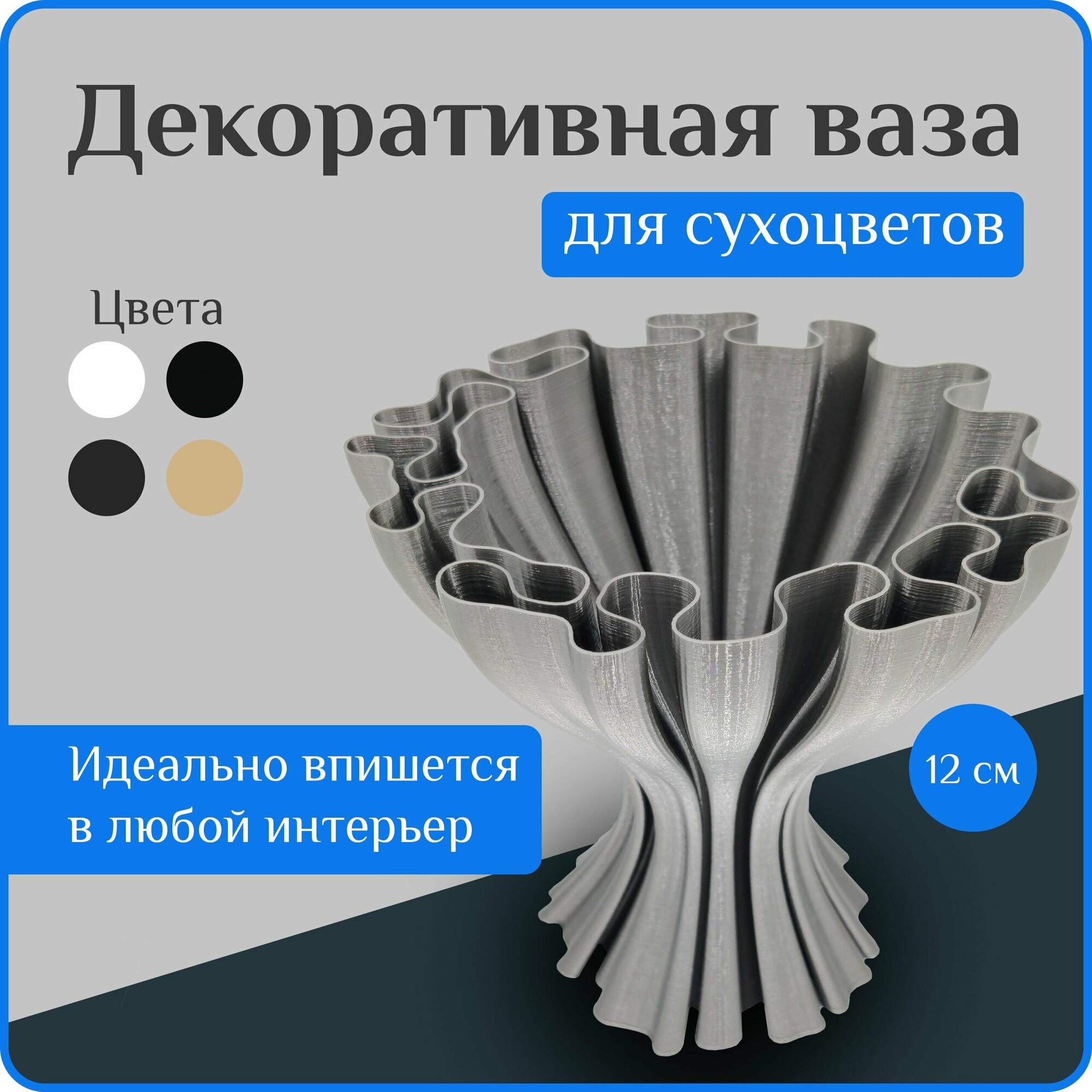 СохранитьВаза декоративная интерьерная "Графит", ваза для сухоцветов, мини ваза, вазы для декора, 12 см, пластик интересное: