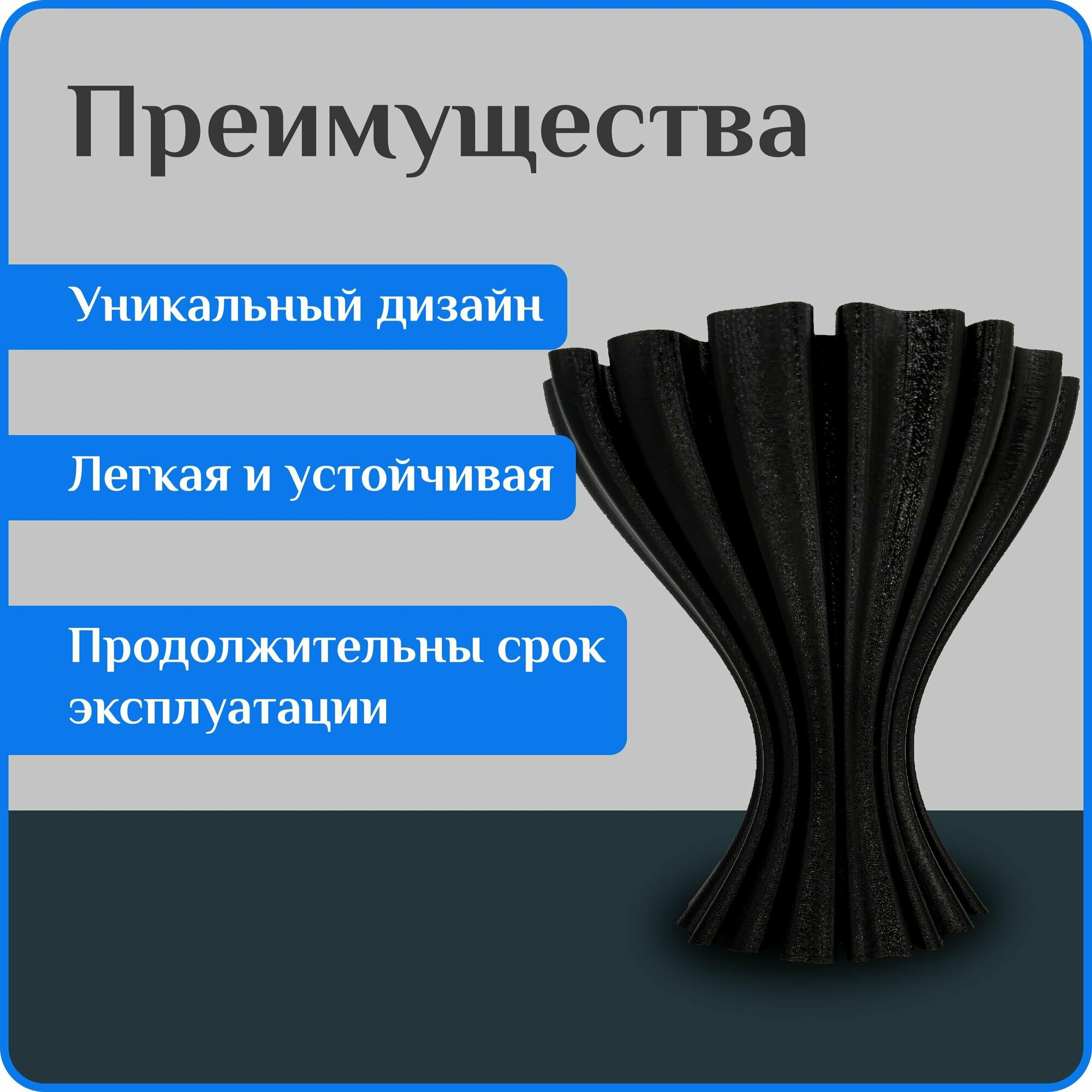 Ваза декоративная интерьерная "Графит", ваза для сухоцветов, мини ваза, вазы для декора, 12 см, пластик