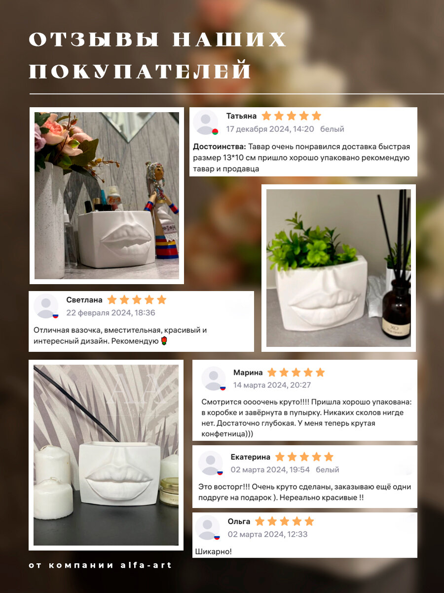 Ниже Вы можете прочитать отзывы на Ваза из гипса для сухоцветов белая декоративная для декора интерьера Губы Джоли, ознакомится с подробными характеристиками, посмотреть интересные обзоры и фотографии на Ваза из гипса для сухоцветов белая декоративная для декора интерьера Губы Джоли.