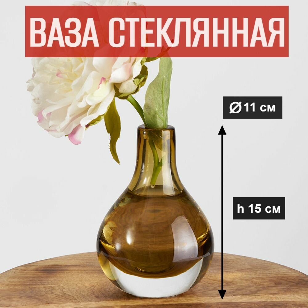 Купить Ваза для цветов и сухоцветов стеклянная прозрачная декоративная интерьерная D11хН15 см