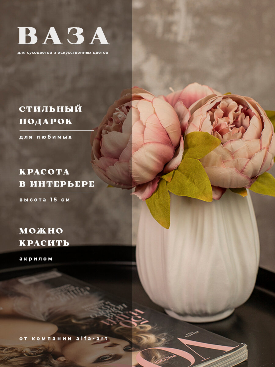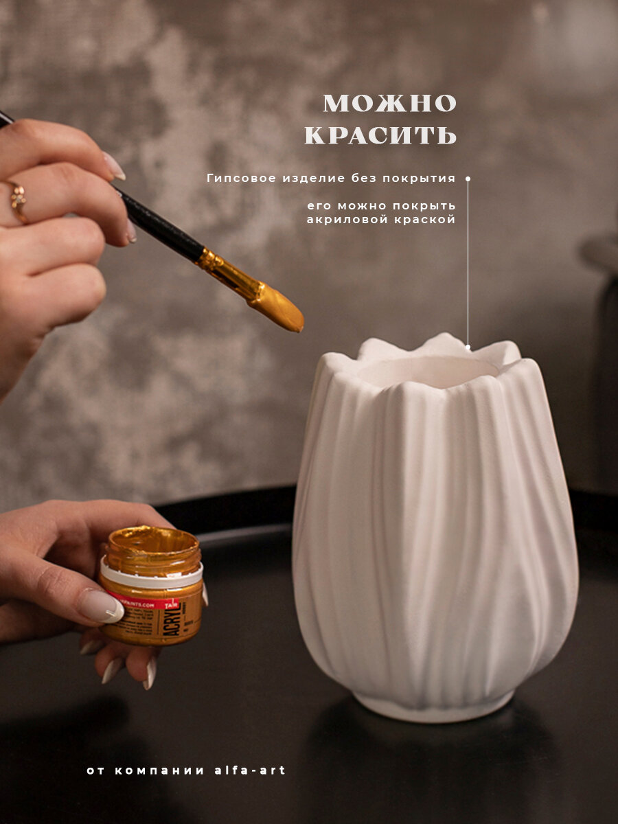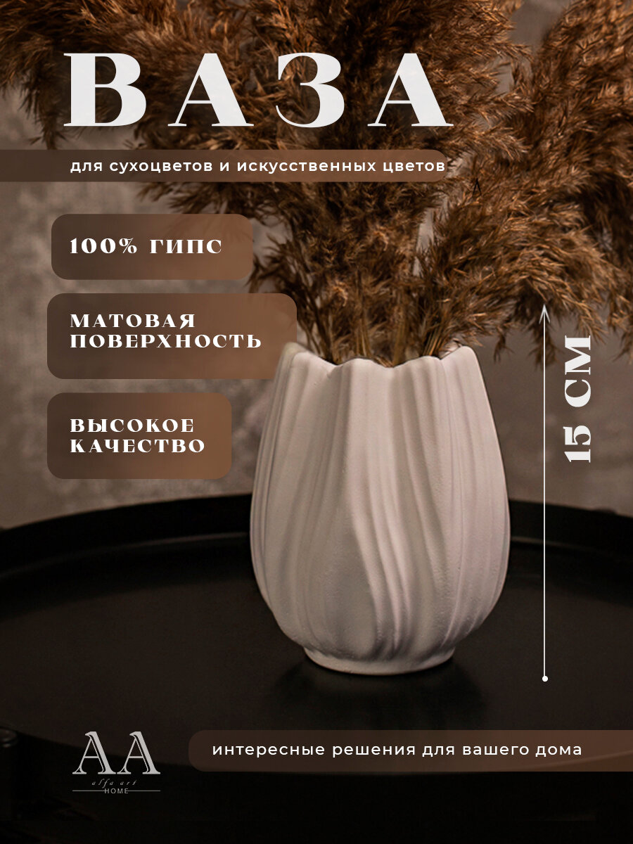 Декоративная ваза интерьерная для сухоцветов из гипса / Вазочка маленькая Тюльпан 15 см интересное:
