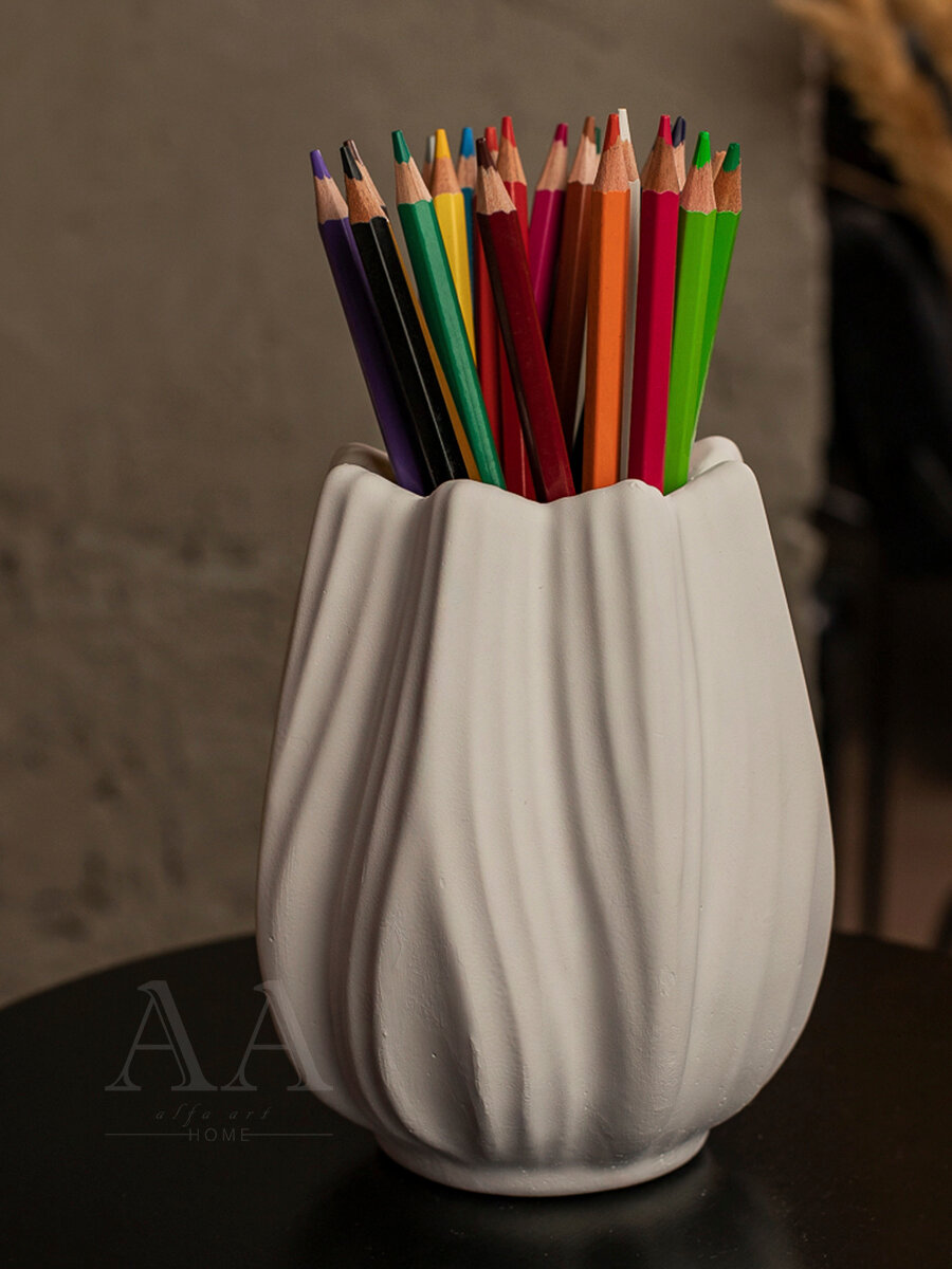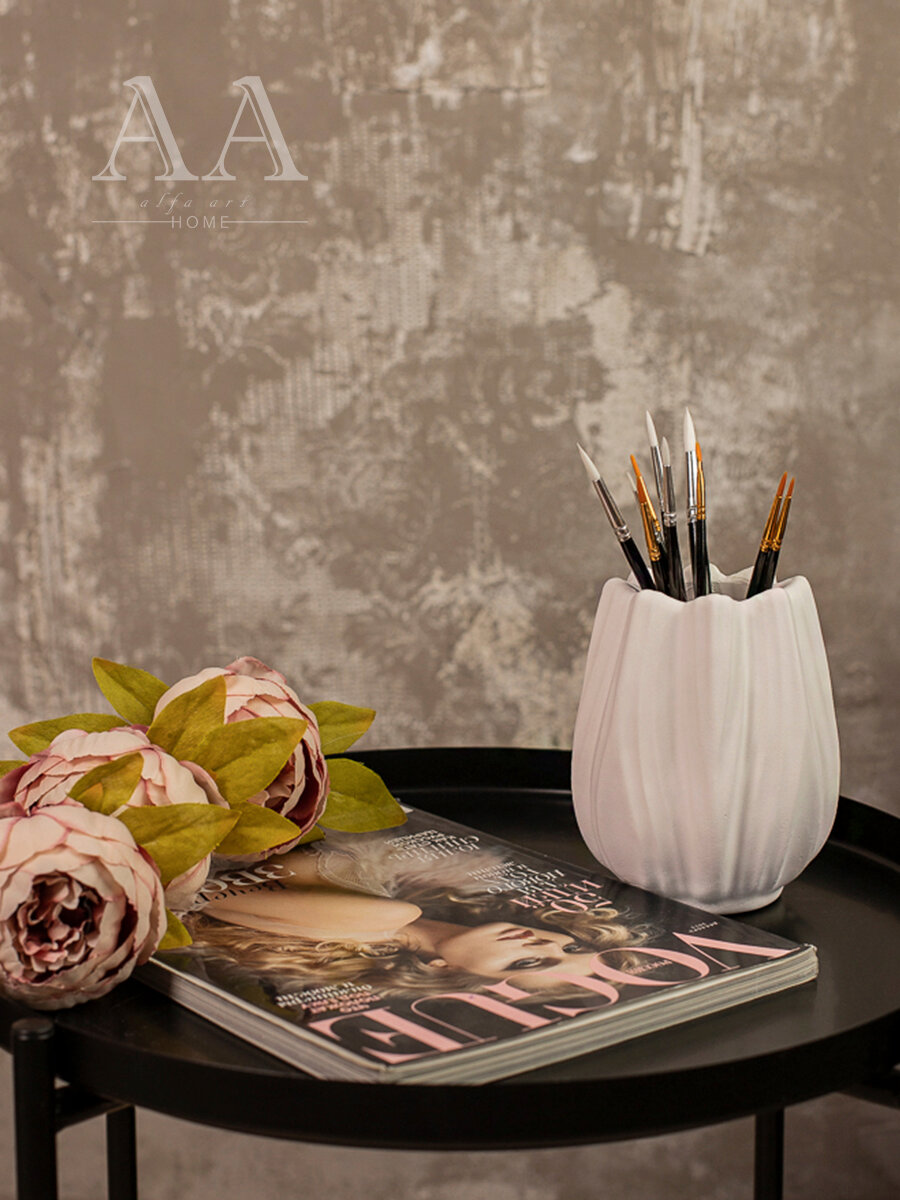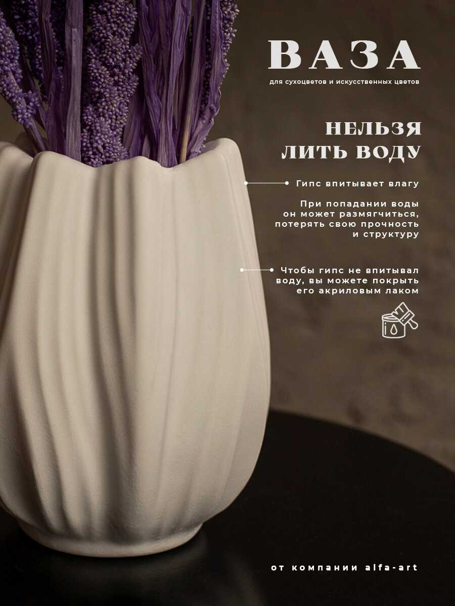 Декоративная ваза интерьерная для сухоцветов из гипса / Вазочка маленькая Тюльпан 15 см интересное: