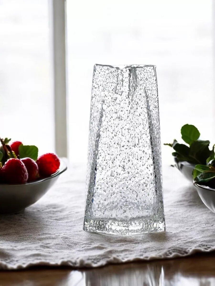 Прозрачная настольная ваза Bogacho Белла из стекла на декоративной ножке для букетов, высоких цветов и сухоцветов