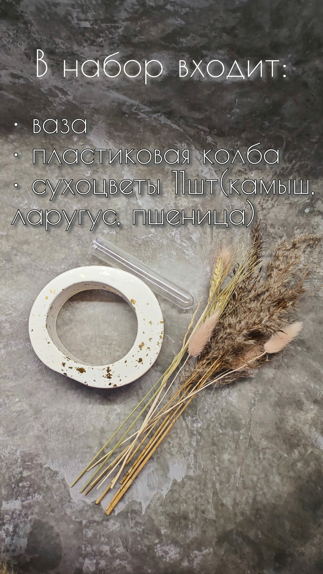 Купить Ваза с колбой Окружность из гипса с сухоцветами