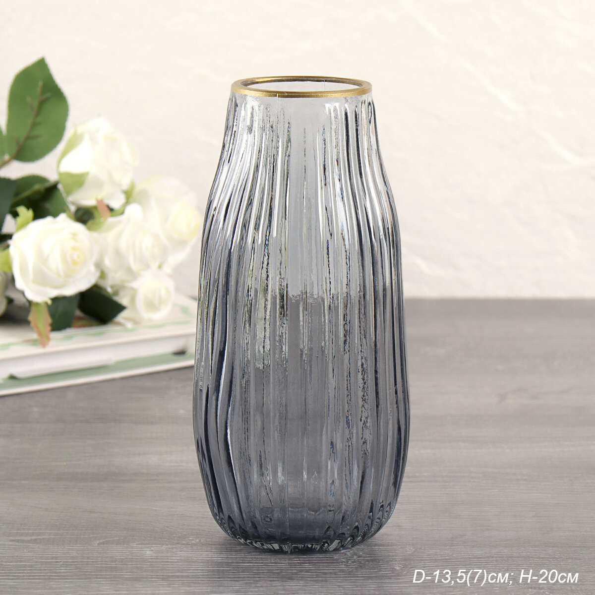 Ваза для цветов 20 см серая с золотой каймой интересное: