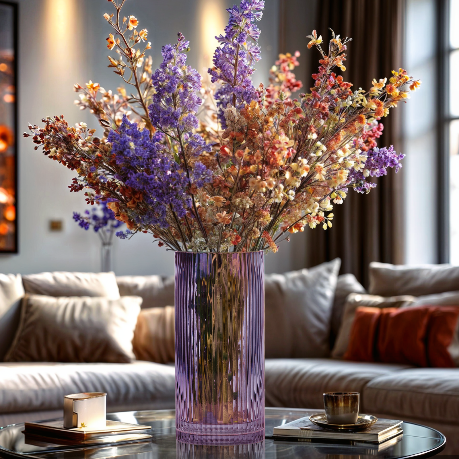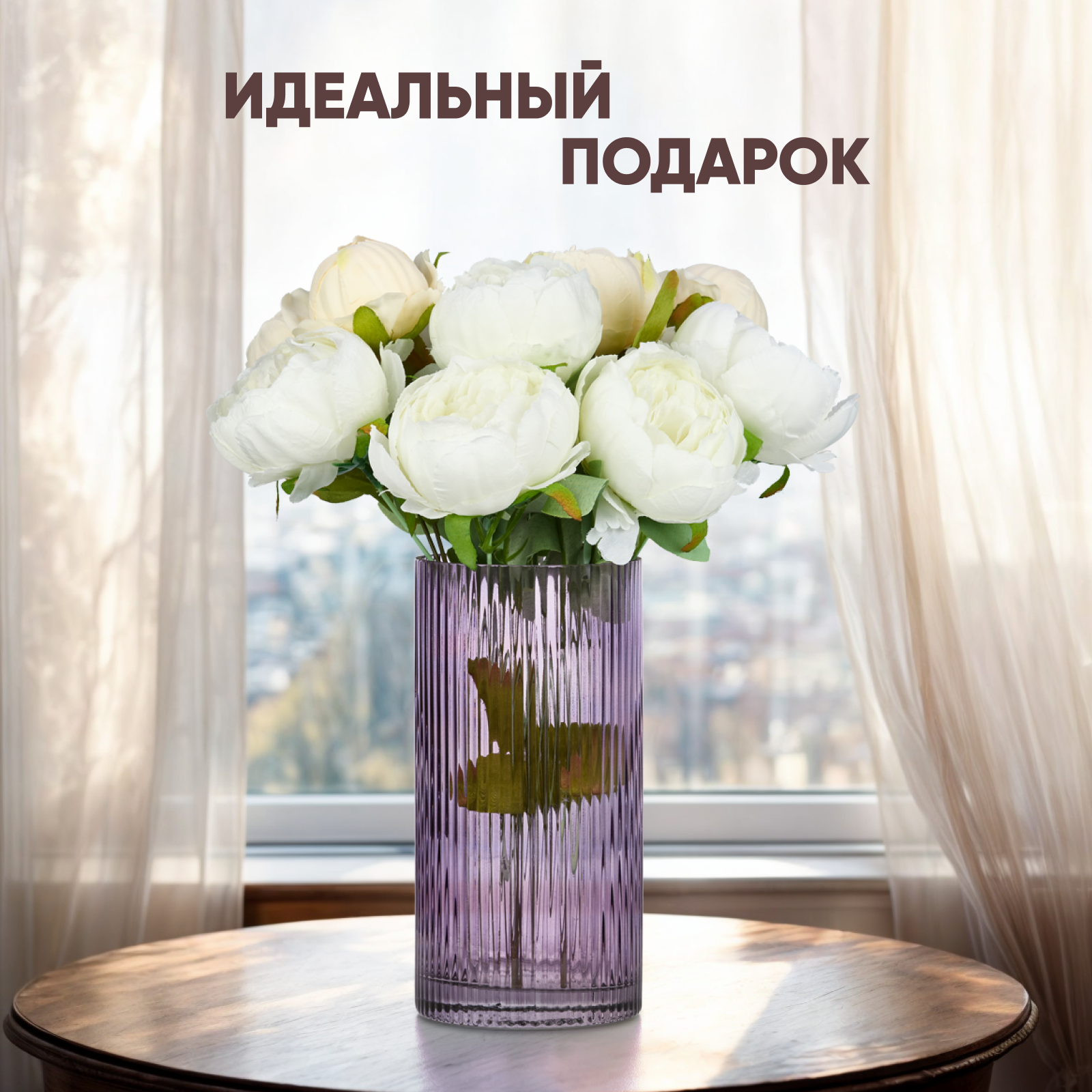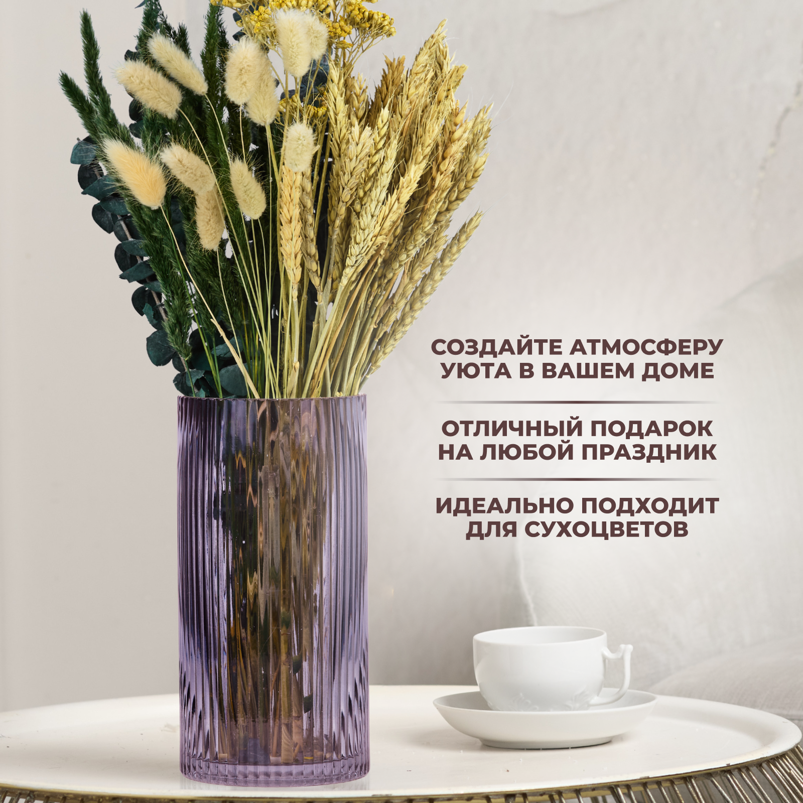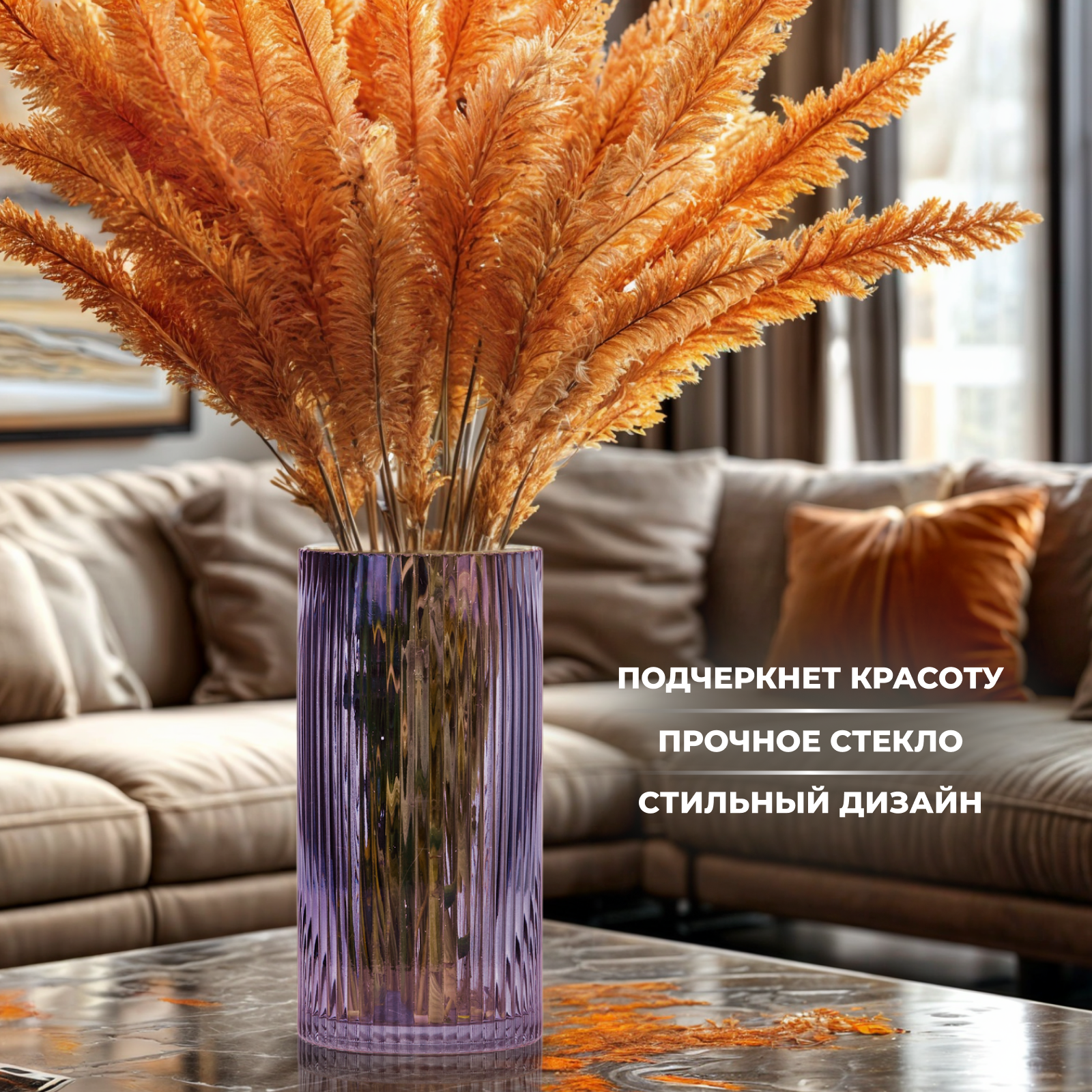 Ваза для цветов и сухоцветов, стеклянная прозрачная, декоративная интерьерная 1 л, фиолетовая 20 см интересное: