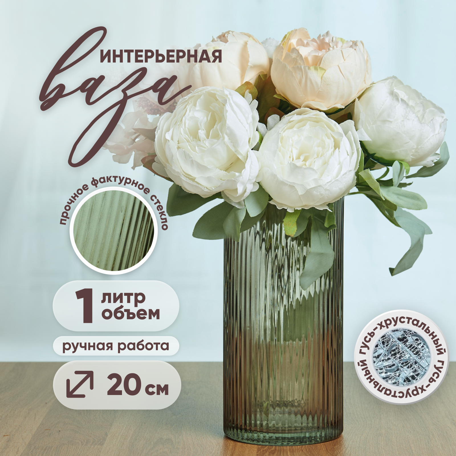 Ваза для цветов и сухоцветов, стеклянная прозрачная, декоративная интерьерная 1 л, желто-зеленая 20 см интересное: