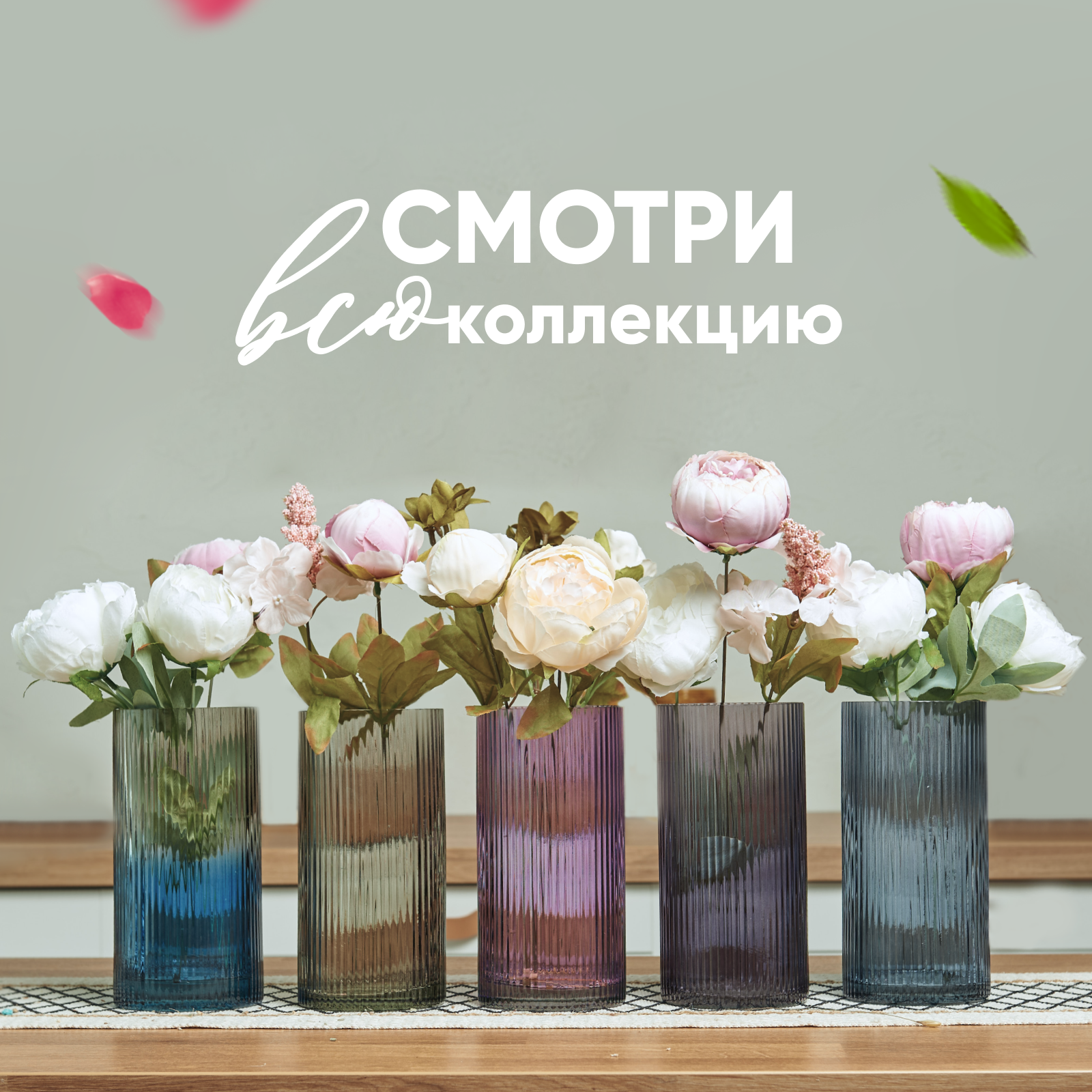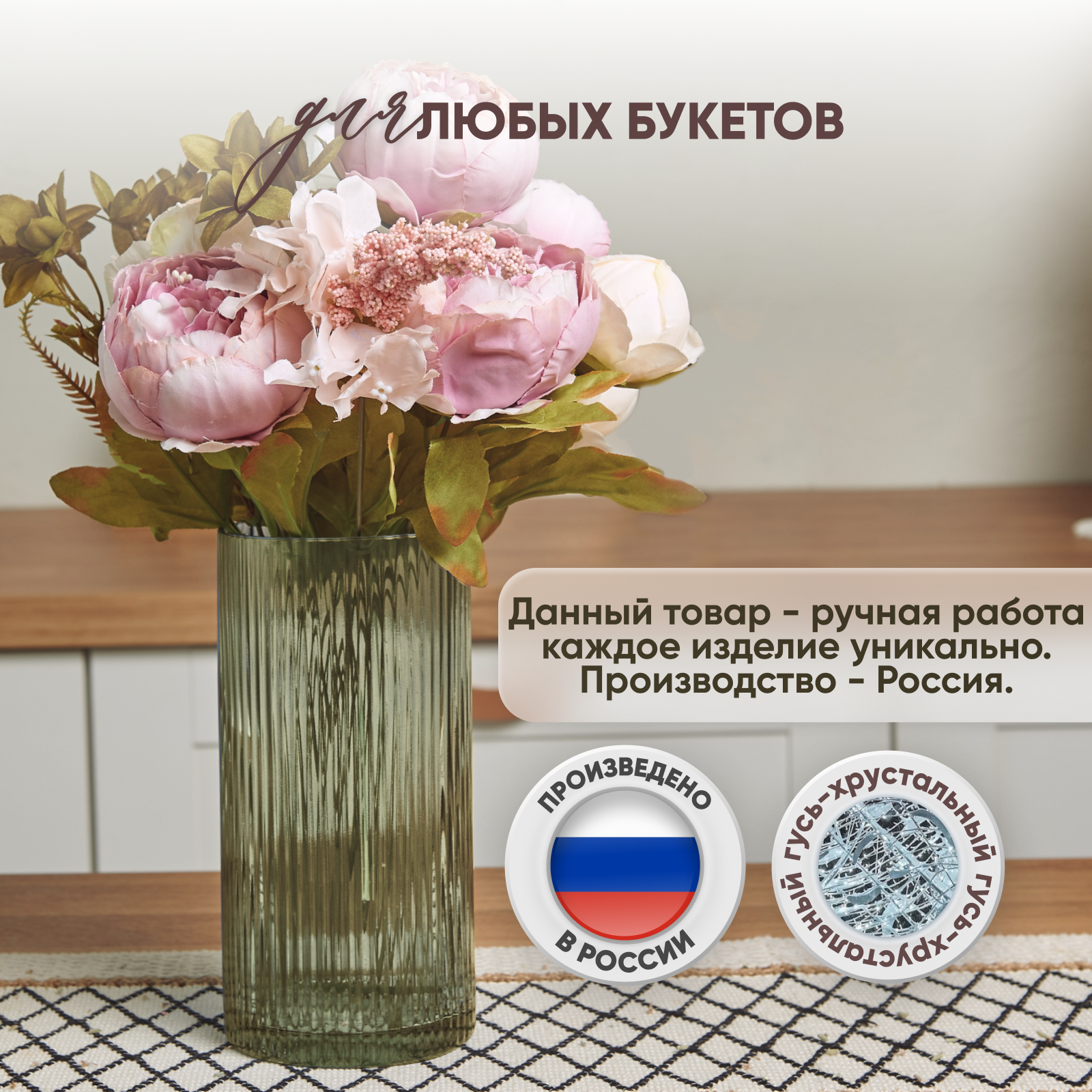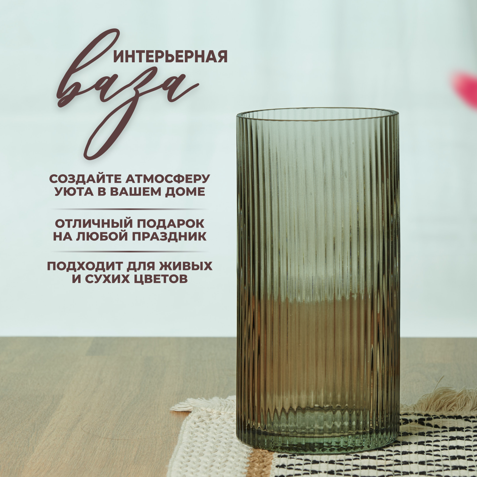 Ваза для цветов и сухоцветов, стеклянная прозрачная, декоративная интерьерная 1 л, серая 20 см