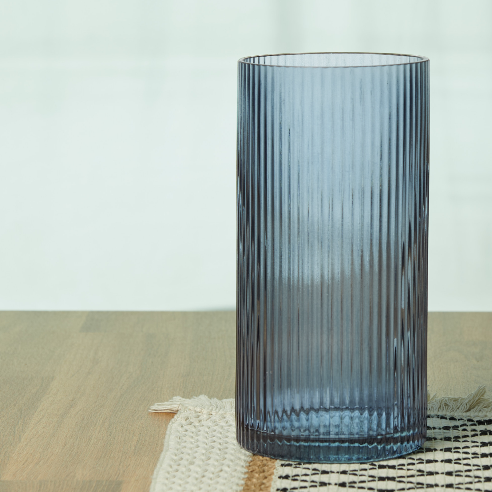 Купить Ваза для цветов и сухоцветов, стеклянная прозрачная, декоративная интерьерная 1 л, голубая 20 см