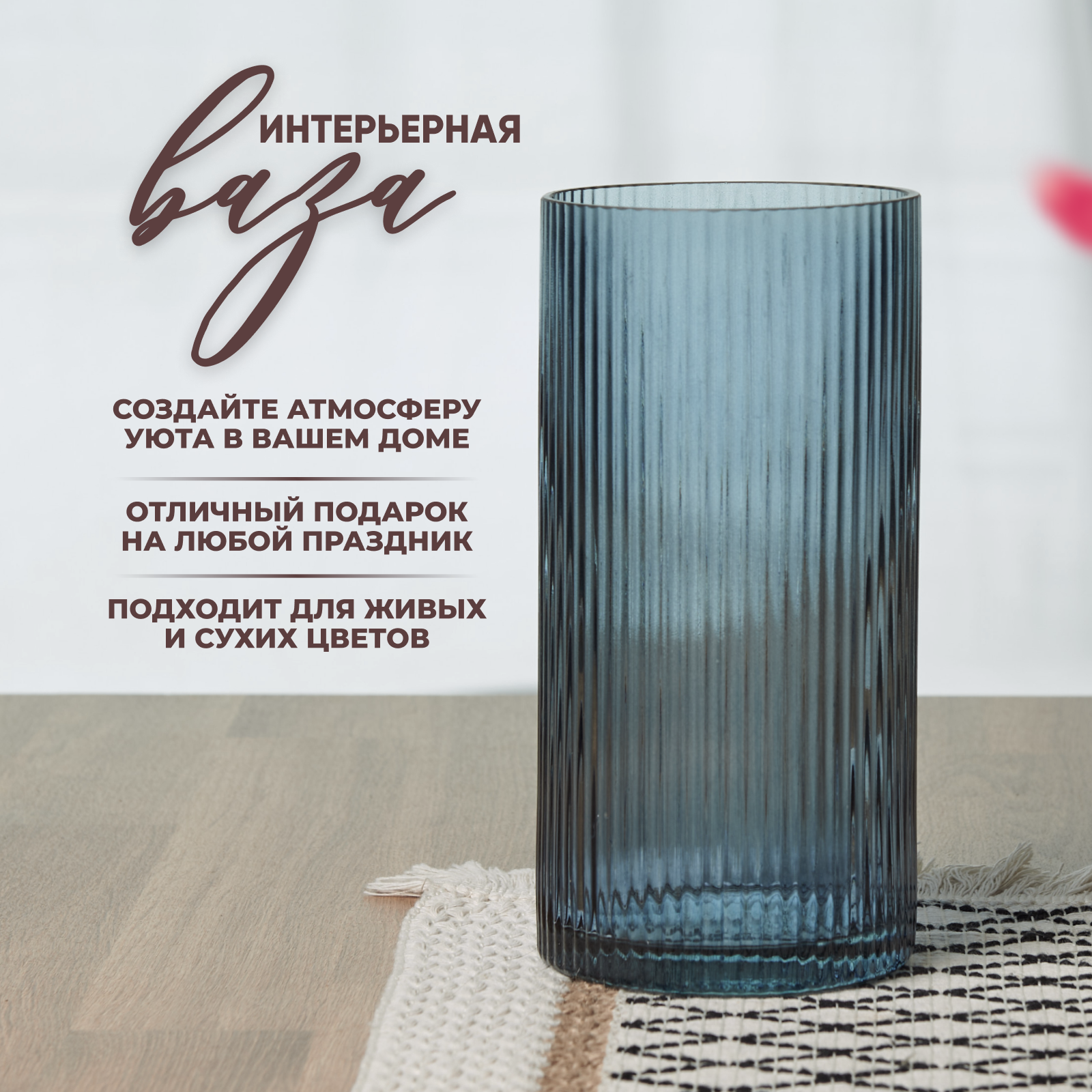 Ваза для цветов и сухоцветов, стеклянная прозрачная, декоративная интерьерная 1 л, голубая 20 см интересное: