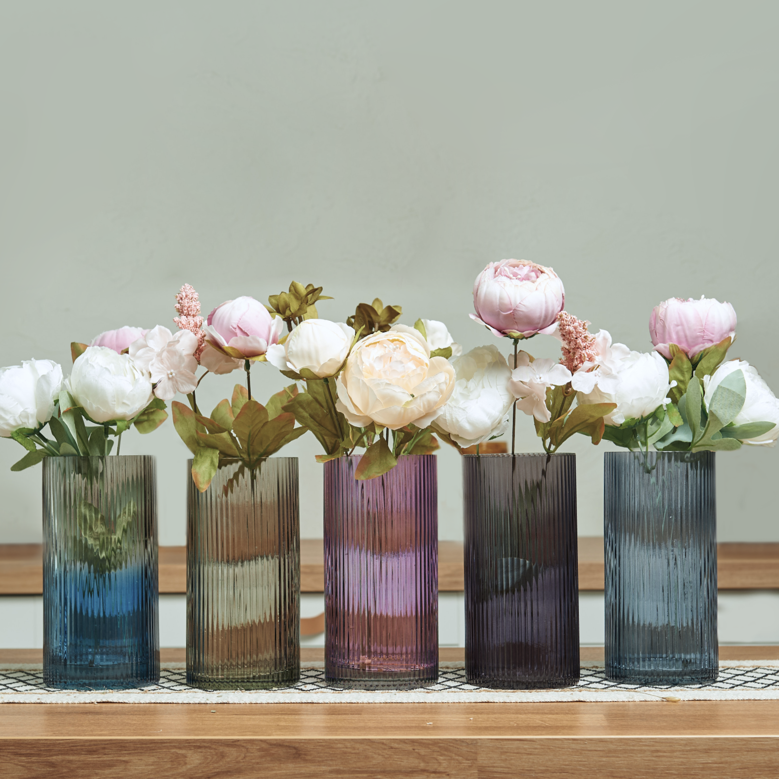 Ваза для цветов и сухоцветов, стеклянная прозрачная, декоративная интерьерная 1 л, серая 20 см