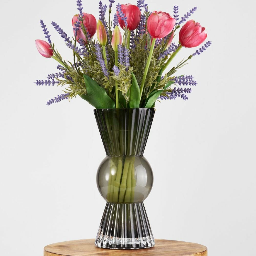 Купить Ваза для цветов и сухоцветов стеклянная прозрачная декоративная интерьерная D11,5хН25 см