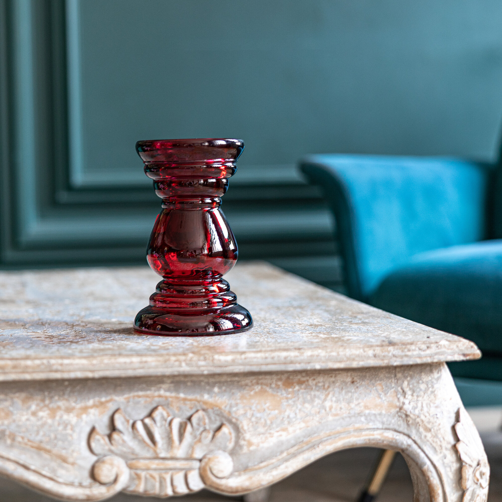 Купить Подсвечник ваза для цветов стеклянная прозрачная интерьерная SAN MIGUEL 19,5 см Цвет: красный