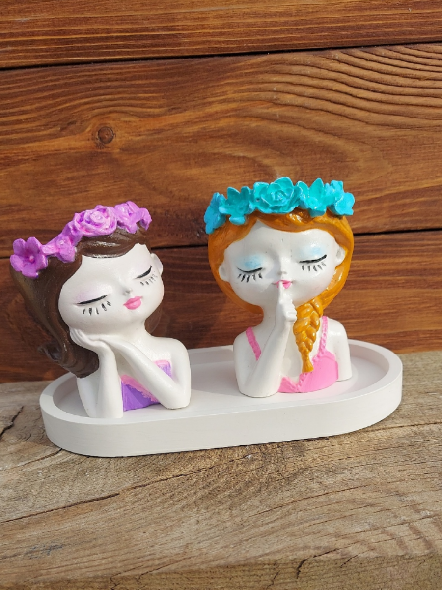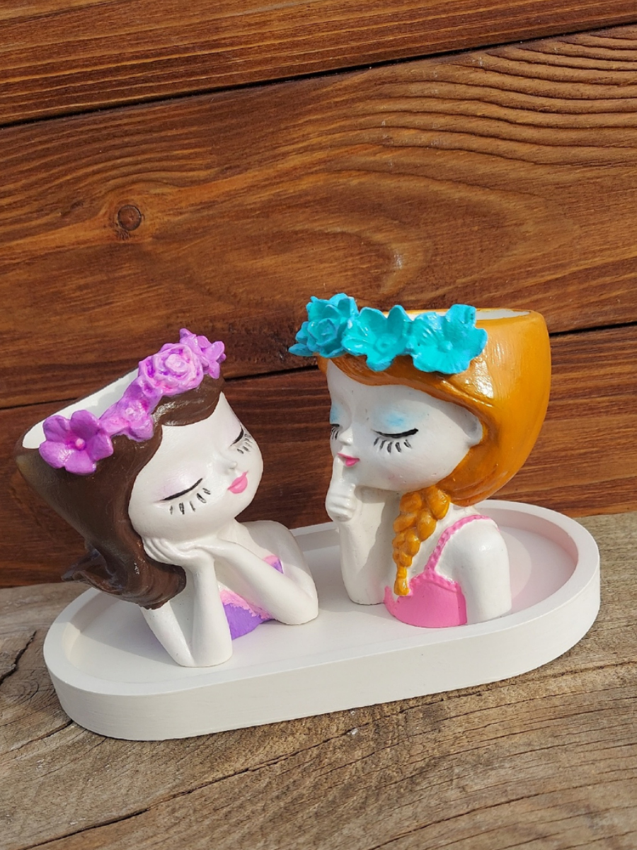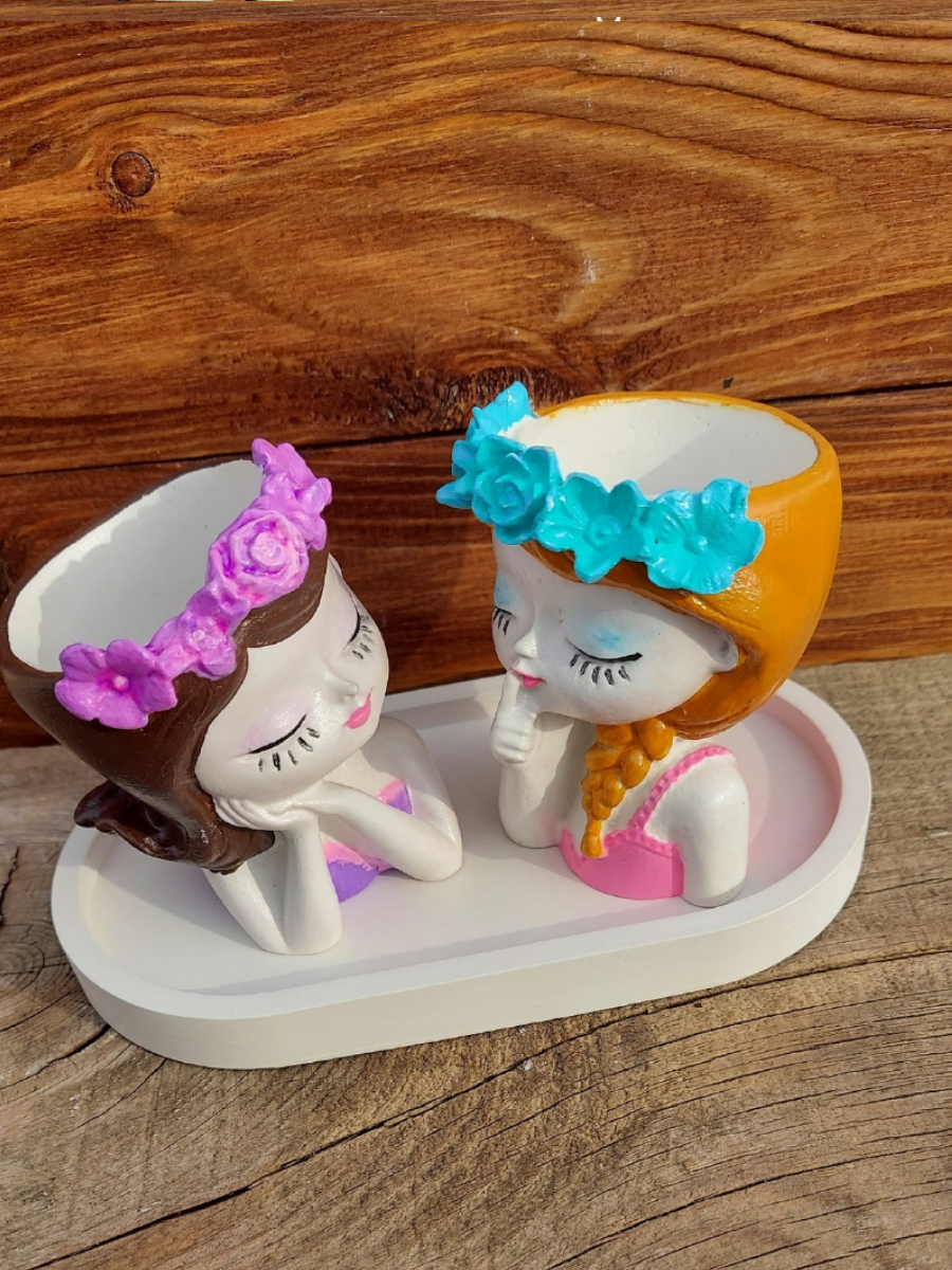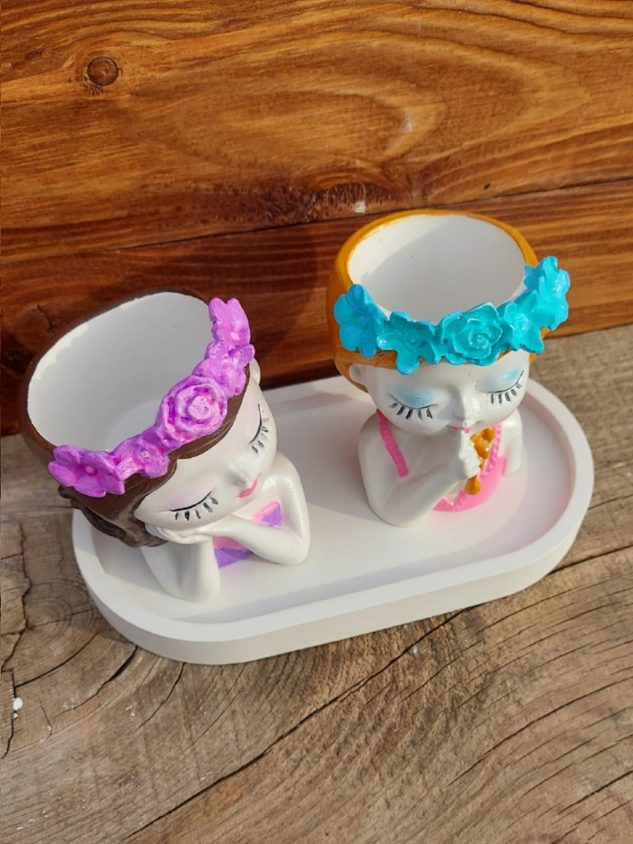 Декоративный набор из гипса две подружки кашпо, поднос, ручная роспись интересное: