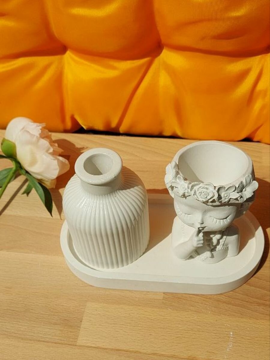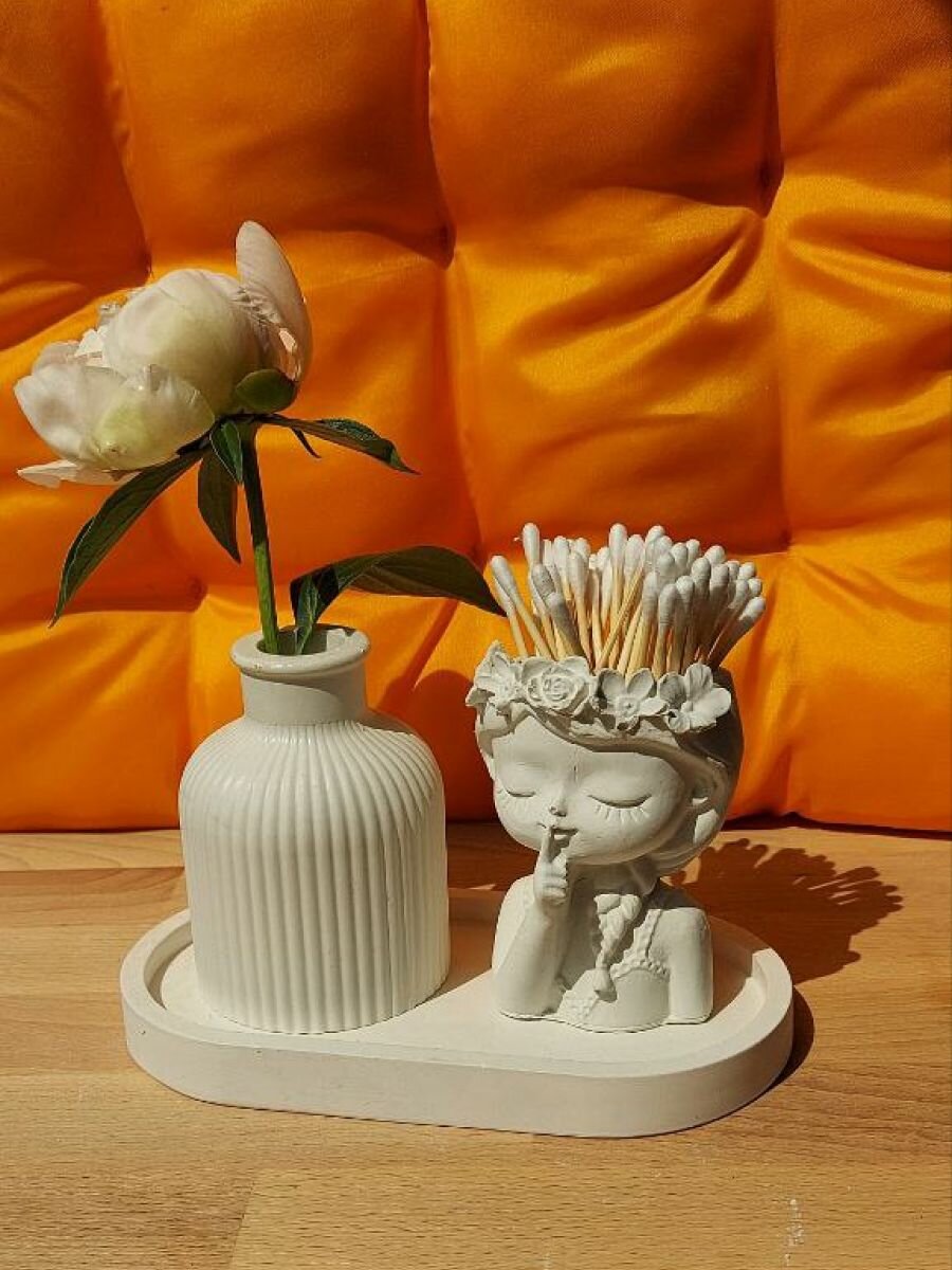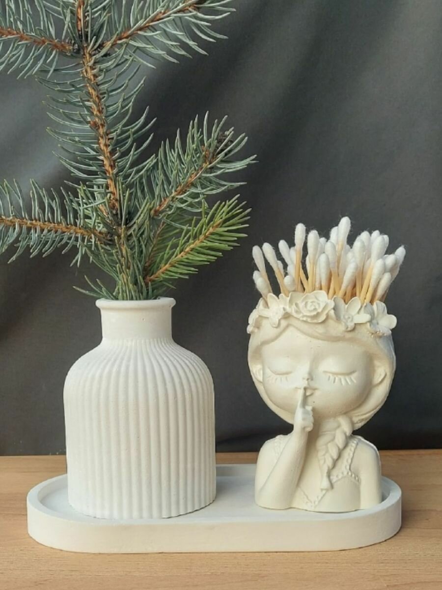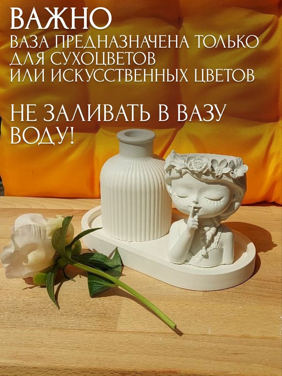 Декоративный, гипсовый набор ваза, подставка и девочка кашпо интересное: