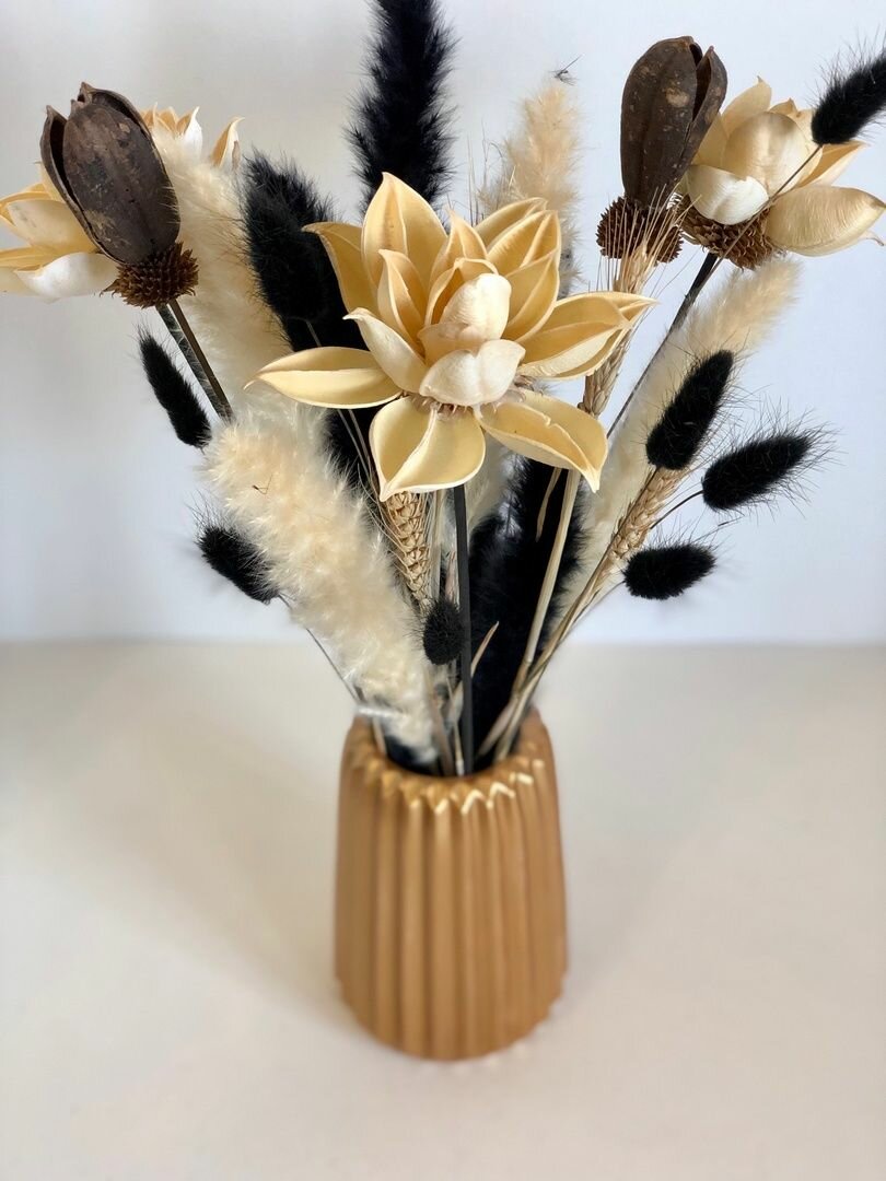 Ваза для сухоцветов / из высокопрочного гипса, черная с золотыми полосками