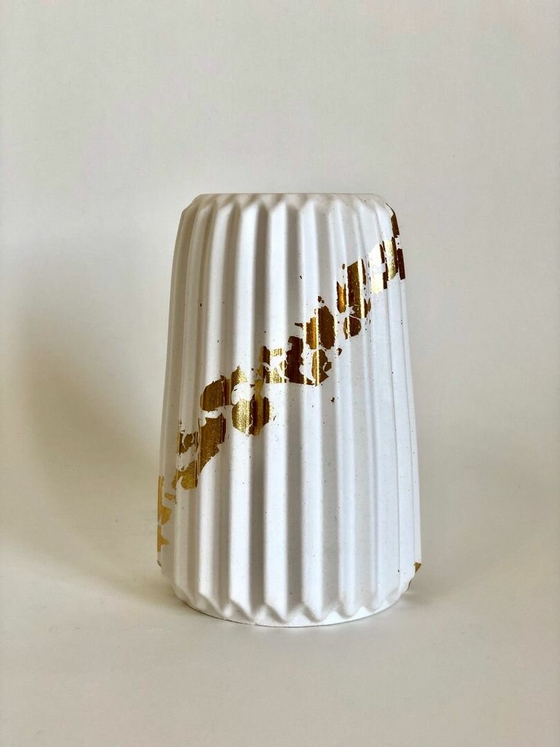 Ваза для сухоцветов / из высокопрочного гипса, серая с холодным золотом