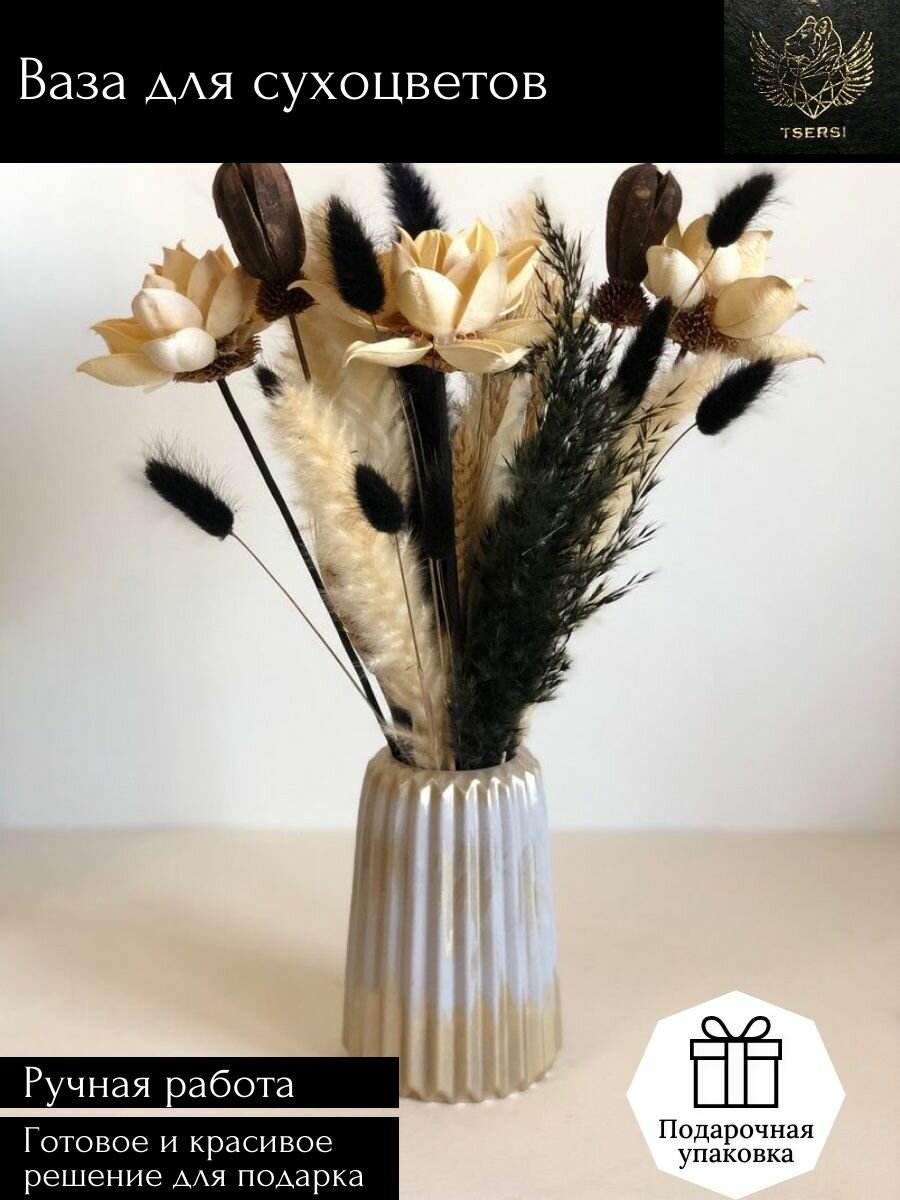 Ваза для сухоцветов / из высокопрочного гипса, белая с золотой поталью