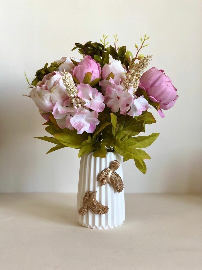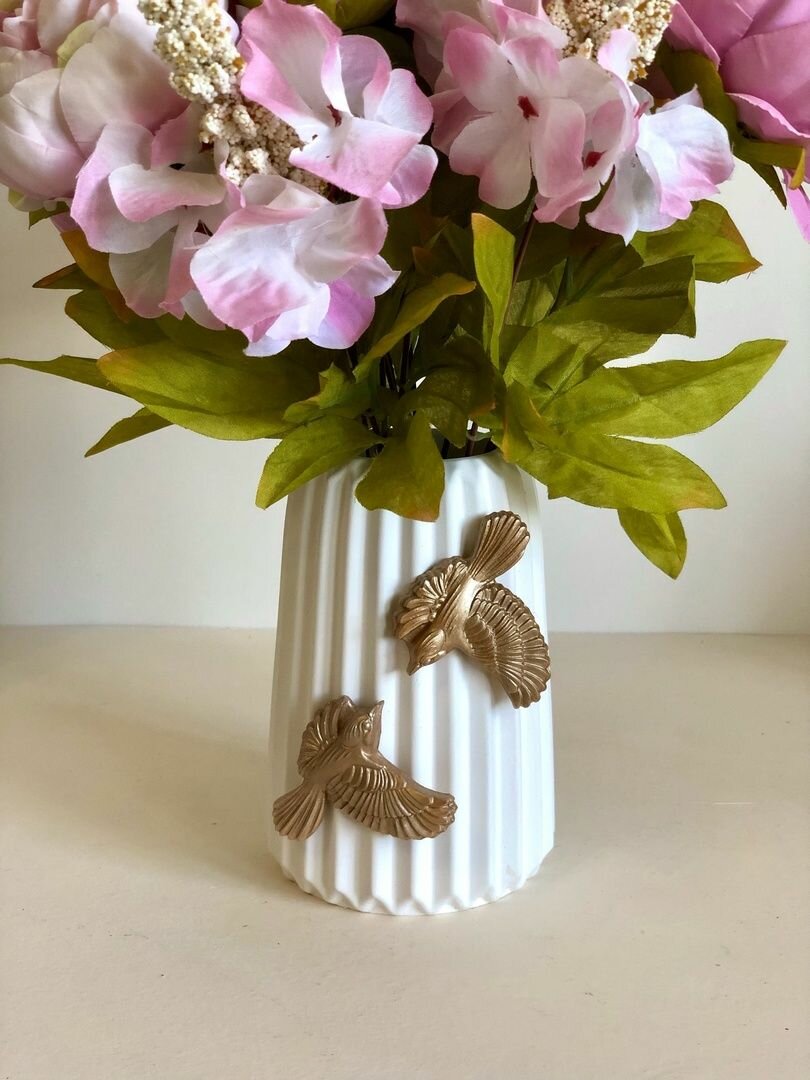 Купить Ваза для сухоцветов, с птичками / из гипса, белая с золотыми птичками
