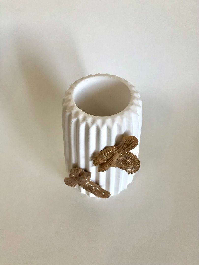 Ваза для сухоцветов, с птичками / из гипса, белая с белыми птичками