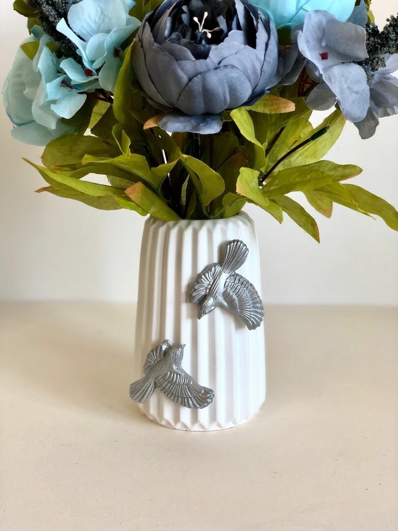 Ваза для сухоцветов, с птичками / из гипса, серо-голубая с серебром, с птичками