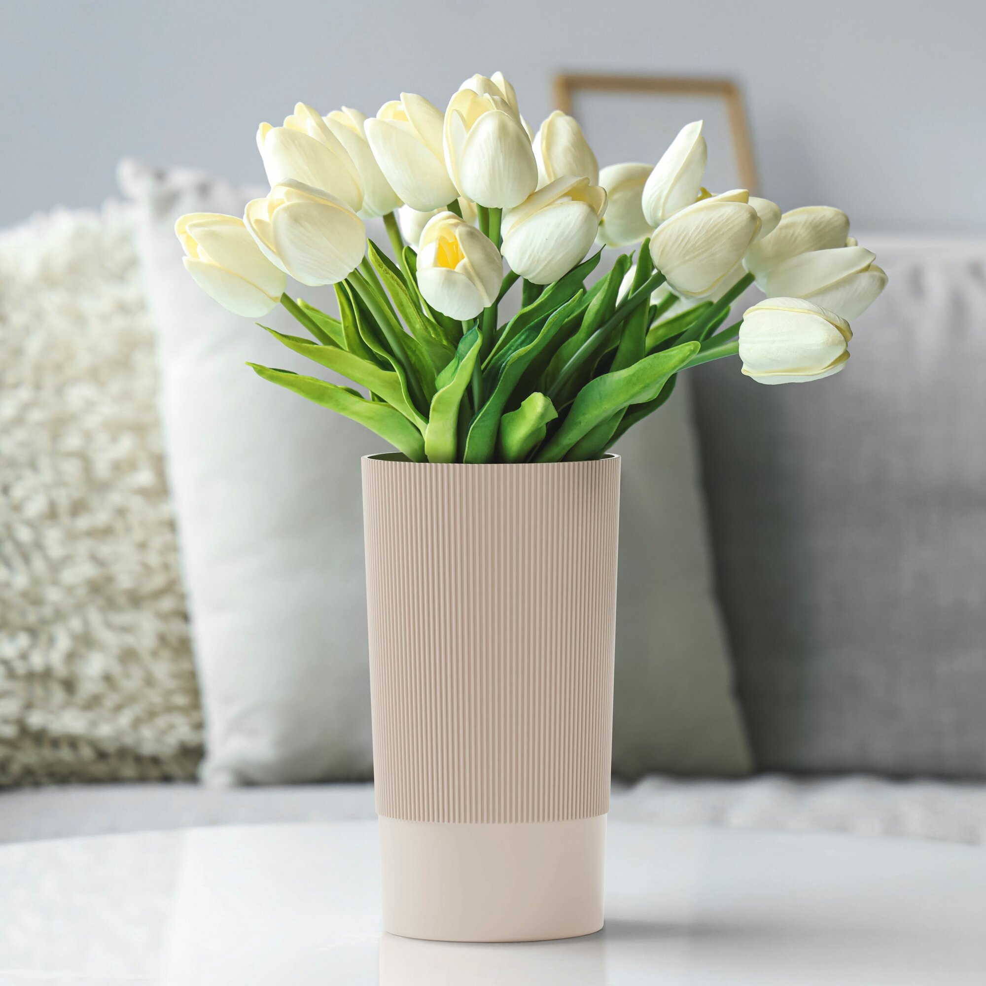 Ваза для цветов под срезку 20 см, цвет бежевый, ваза для интерьера