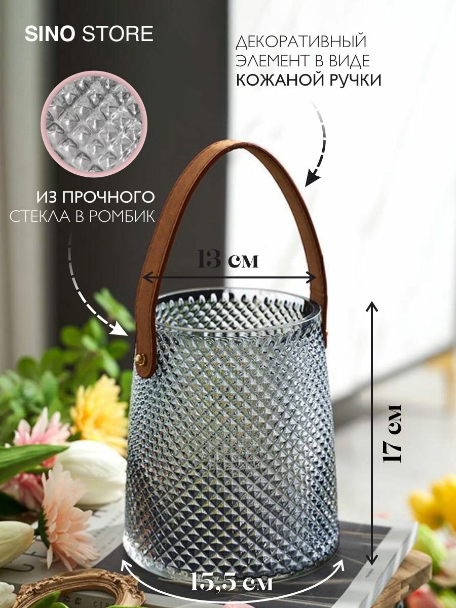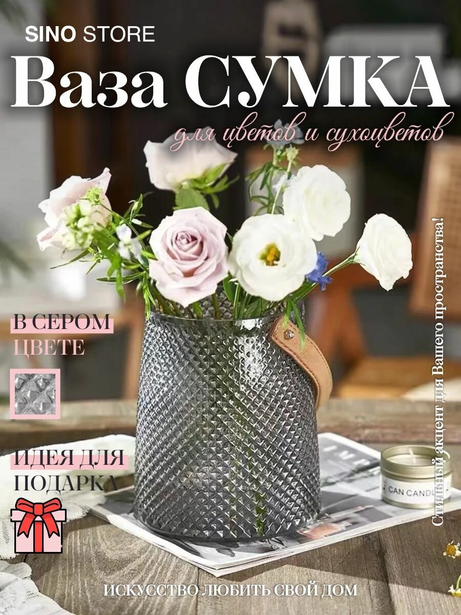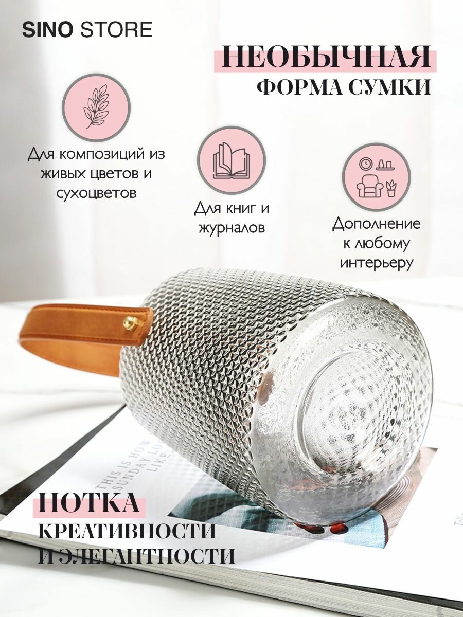 Ваза для цветов сумка стеклянная круглая 17 см интересное: