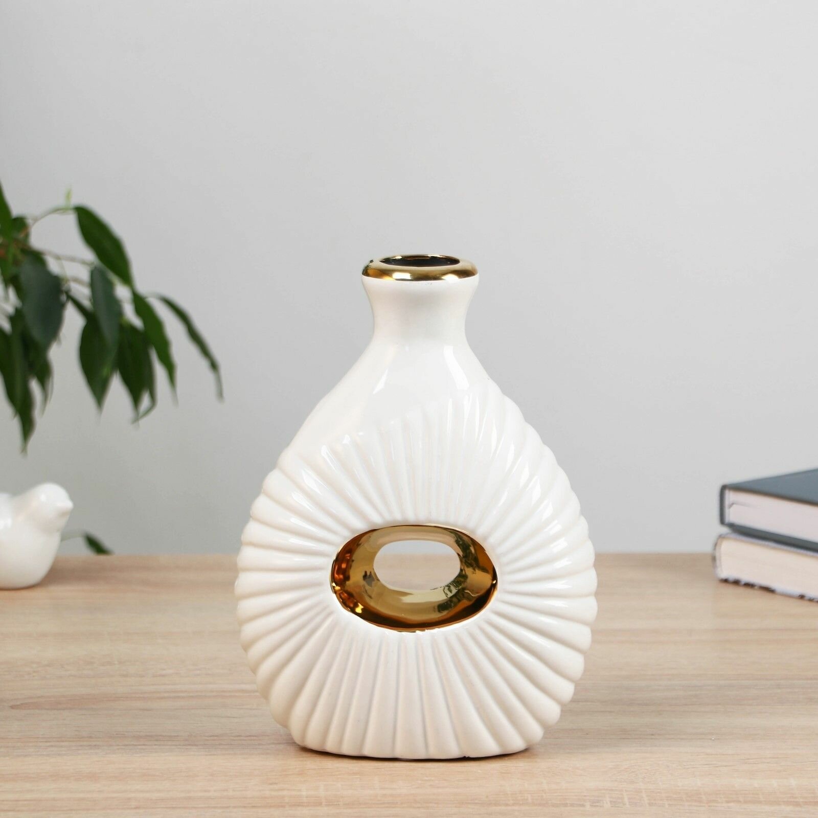 Керамическая ваза декоративная настольная Эстер , для цветов, сухоцветов, 22 см, белый