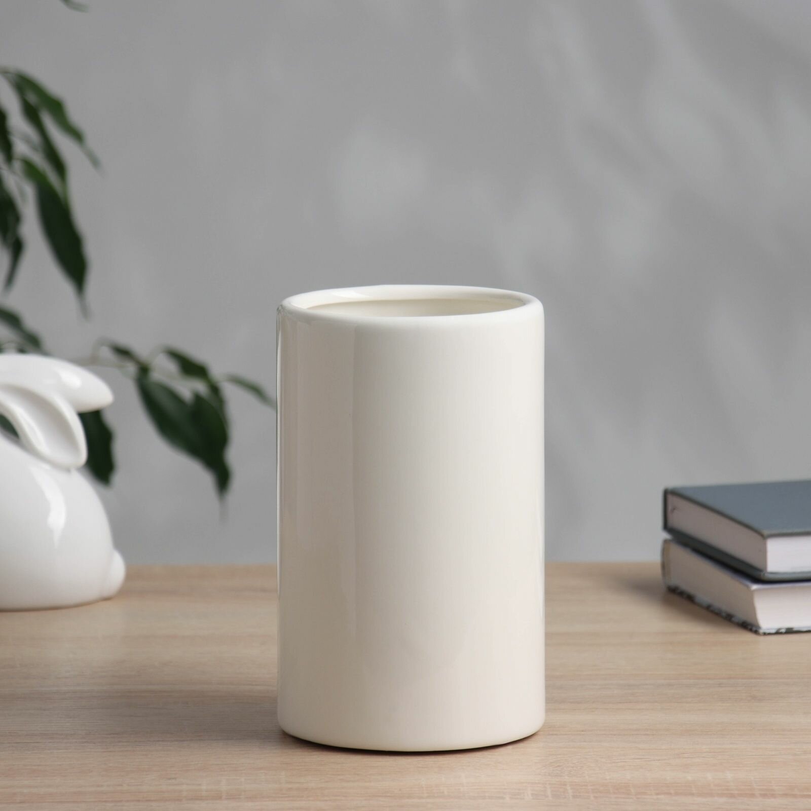 Керамическая ваза для цветов, сухоцветов Ладо , настольная, 18.5 см, белый