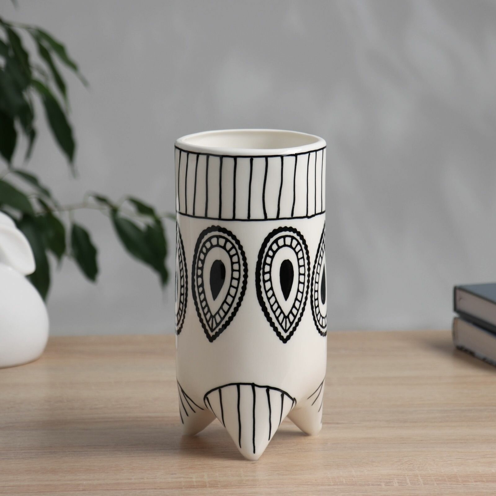 Купить Керамическая ваза декоративная настольная Пикассо (ручная роспись), орнамент, для цветов, сухоцветов, 20 9.5 см, чёрно-белый