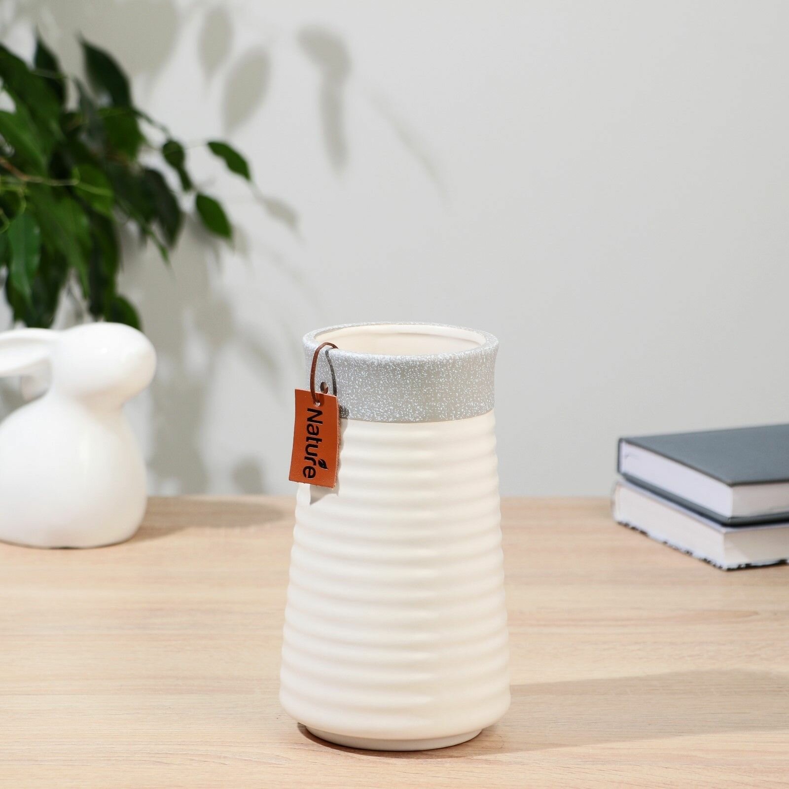 Керамическая ваза декоративная настольная Эстер , для цветов, сухоцветов, 22 см, белый