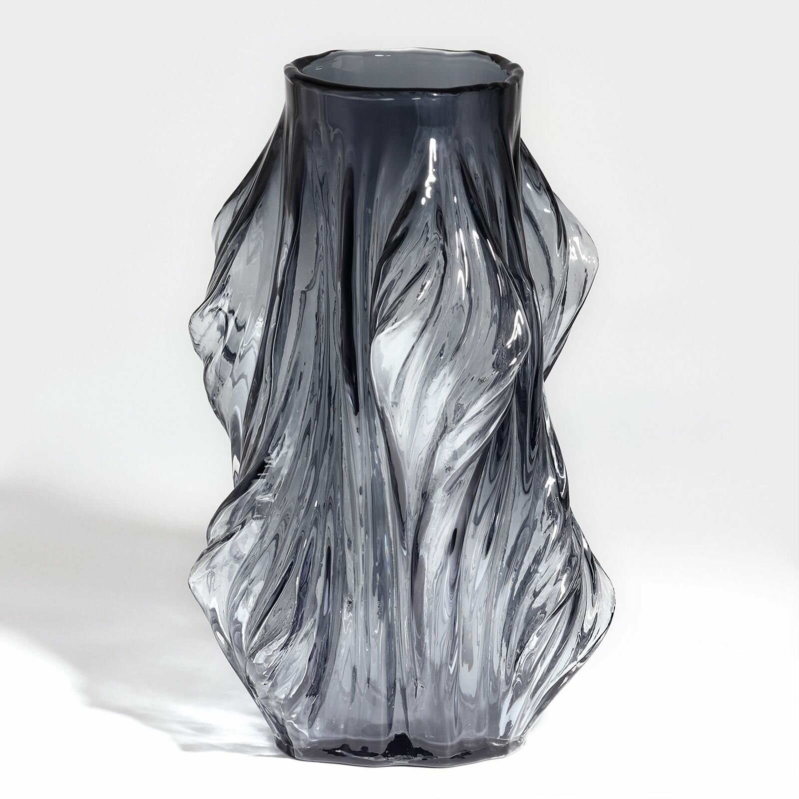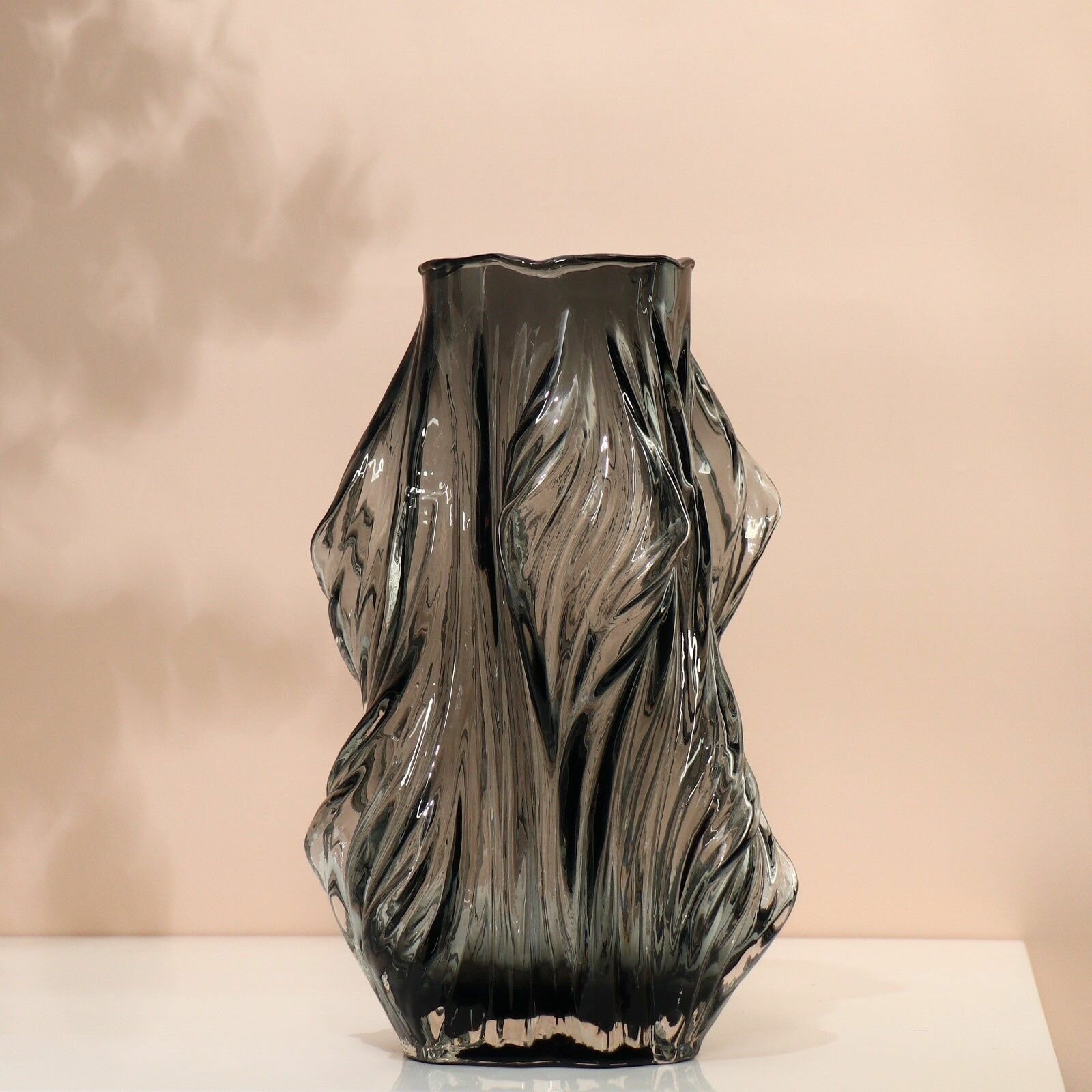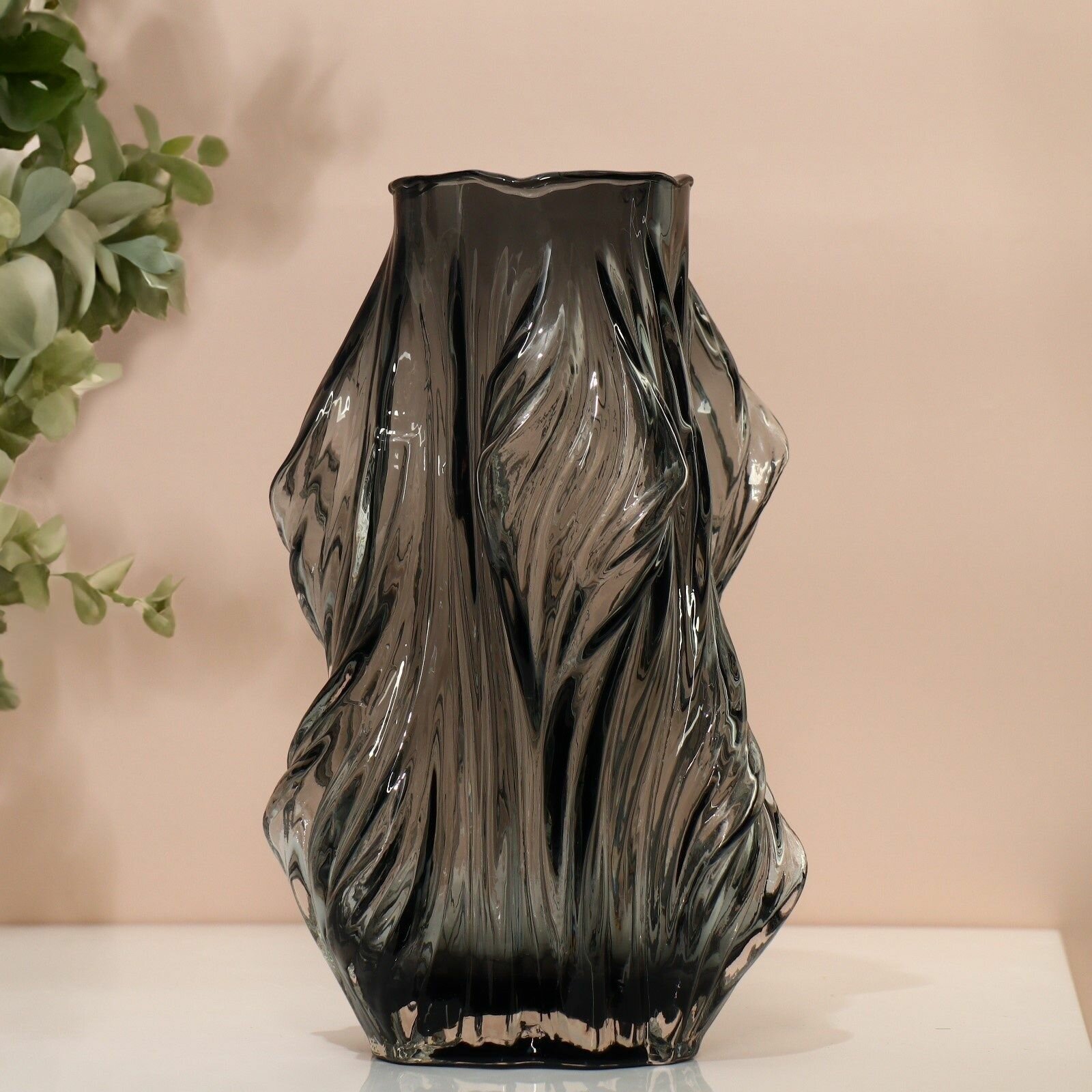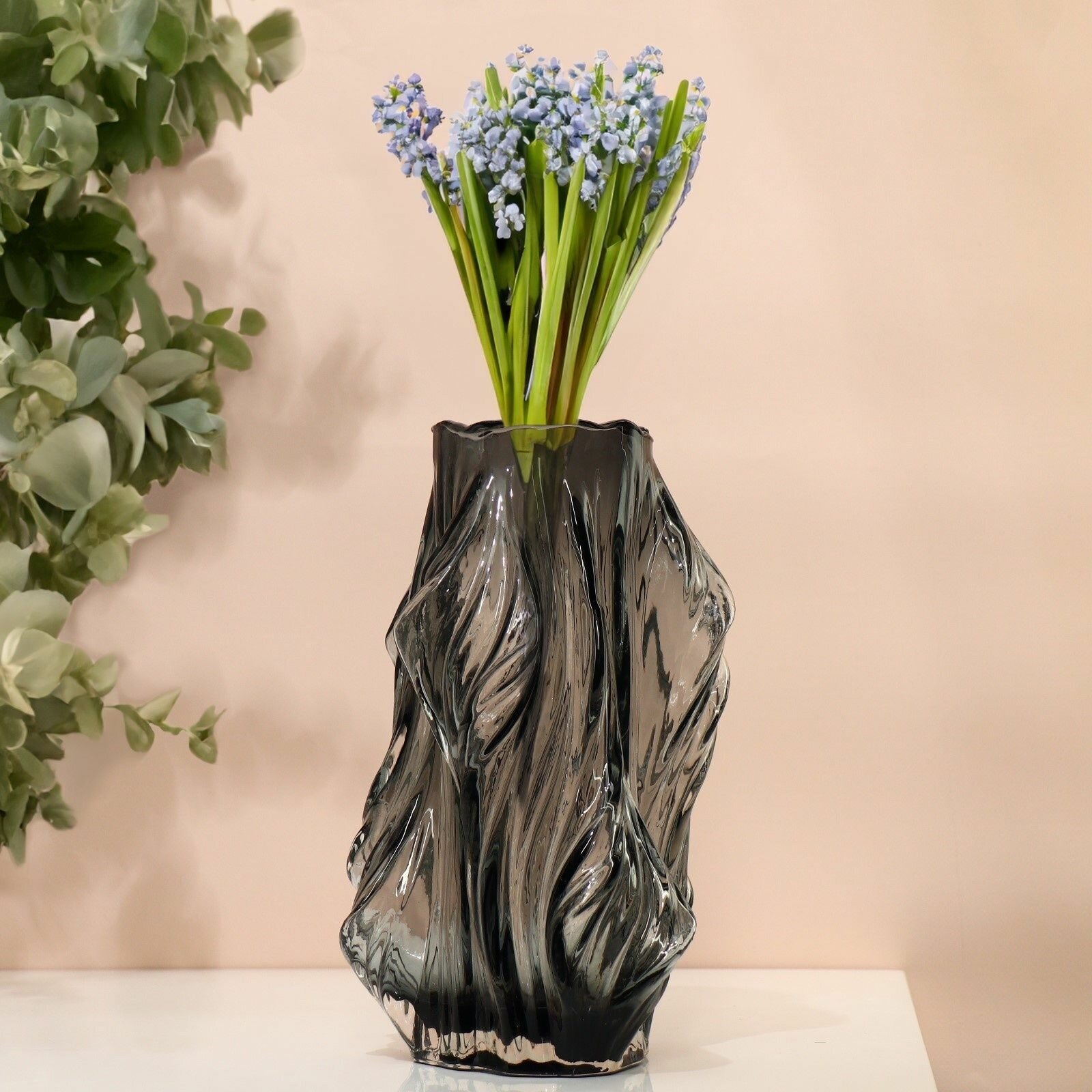 Ваза для цветов Мальва из темного прозрачного стекла 30 х 15 х 15 см