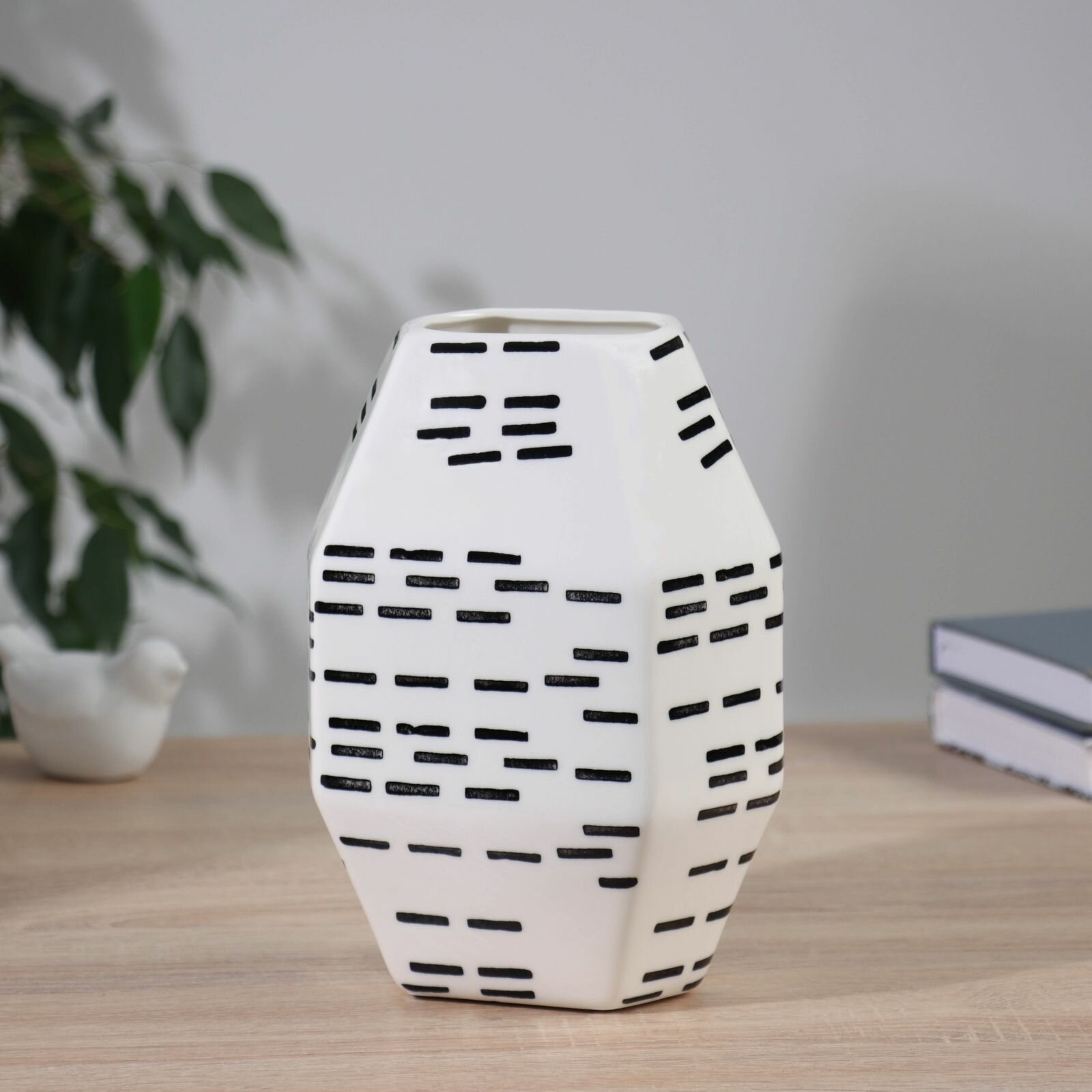 СохранитьКерамическая ваза декоративная настольная Пикассо (ручная роспись), штрихи грани, для цветов, сухоцветов, 20.5 13 см, чёрно-белый интересное: