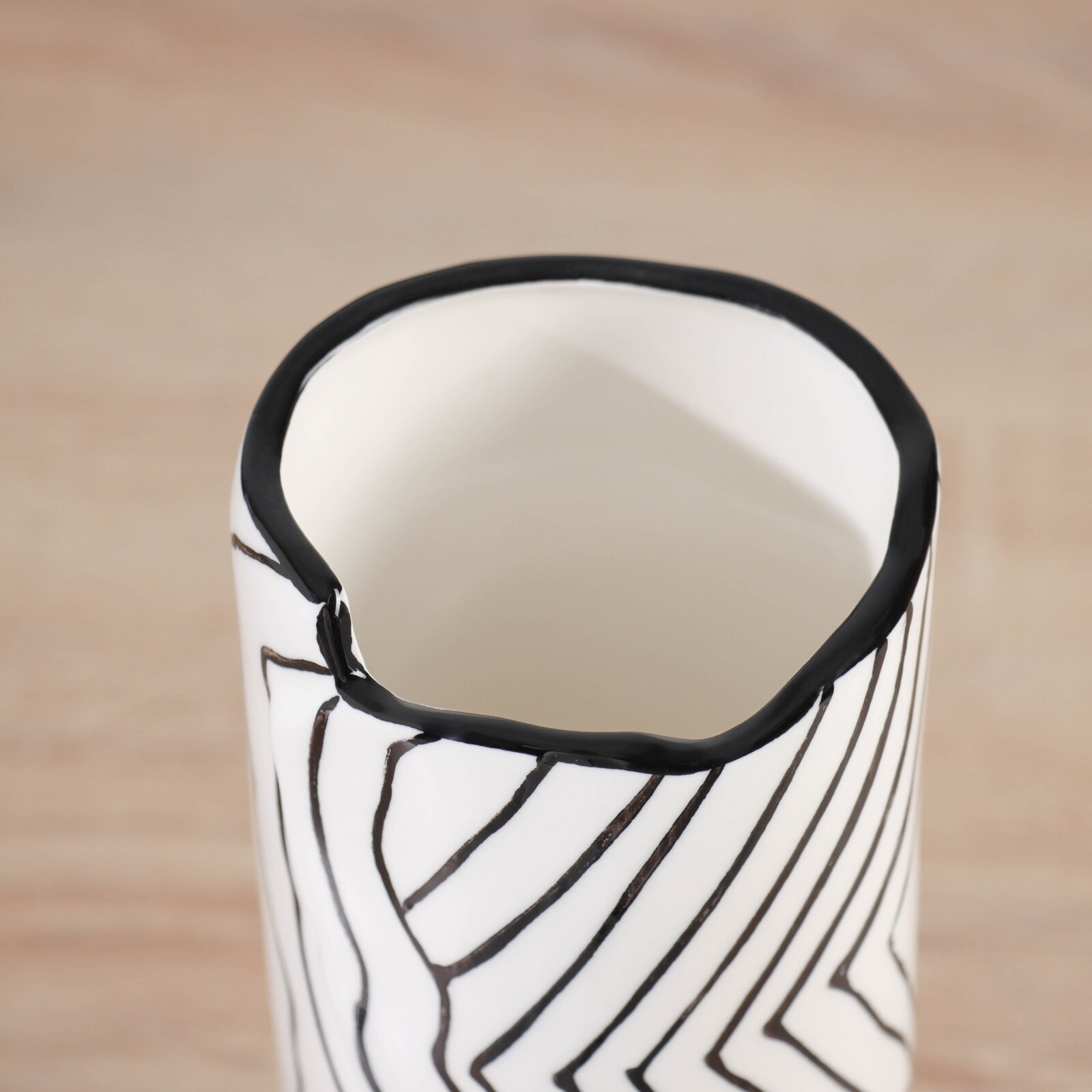 Керамическая ваза для цветов, сухоцветов Пикассо (ручная роспись), талия геометрия, настольная, 23 11.5 см, чёрно-белый