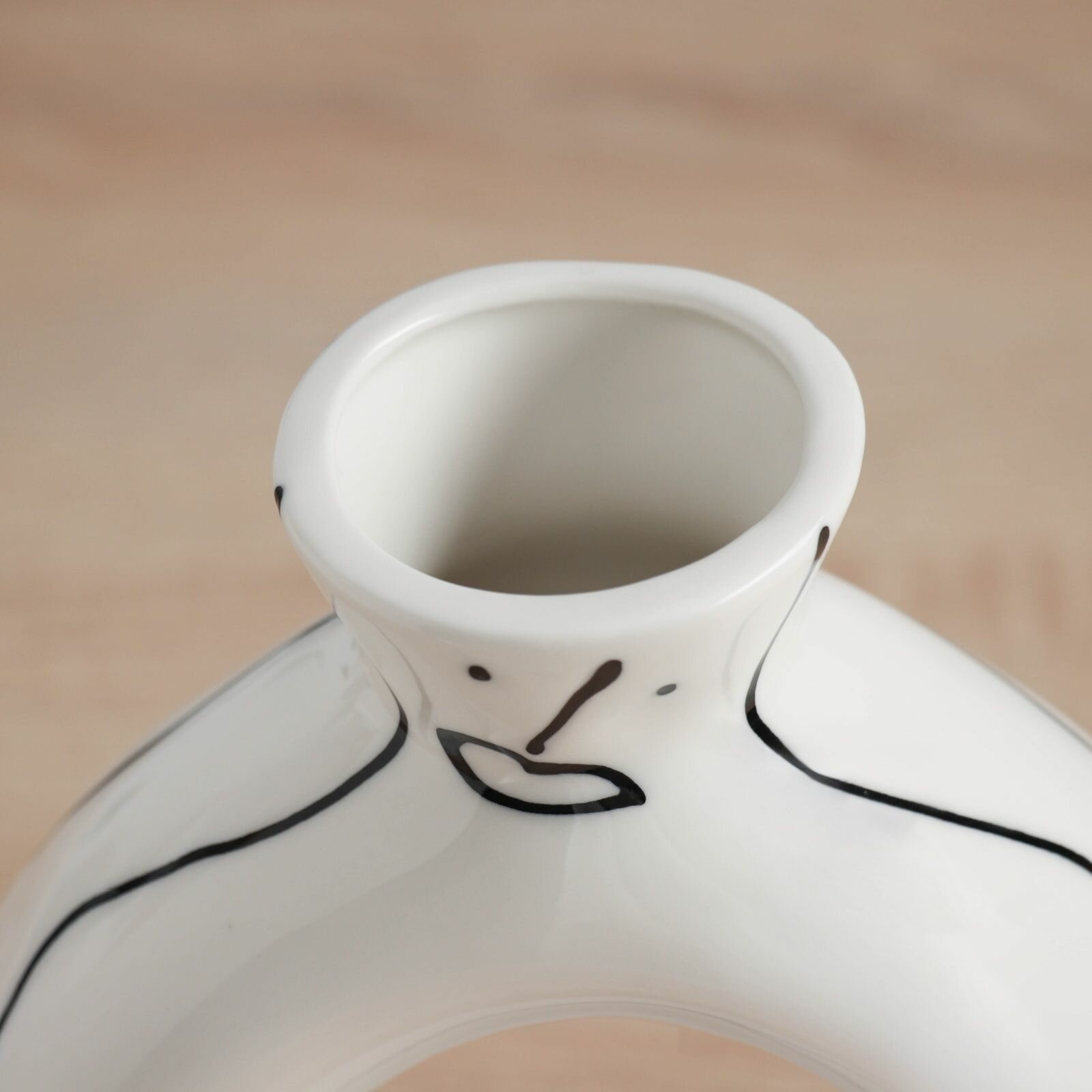 Керамическая ваза декоративная настольная Пикассо (ручная роспись), солнце, для цветов, сухоцветов, 17 12 см, чёрно-белый