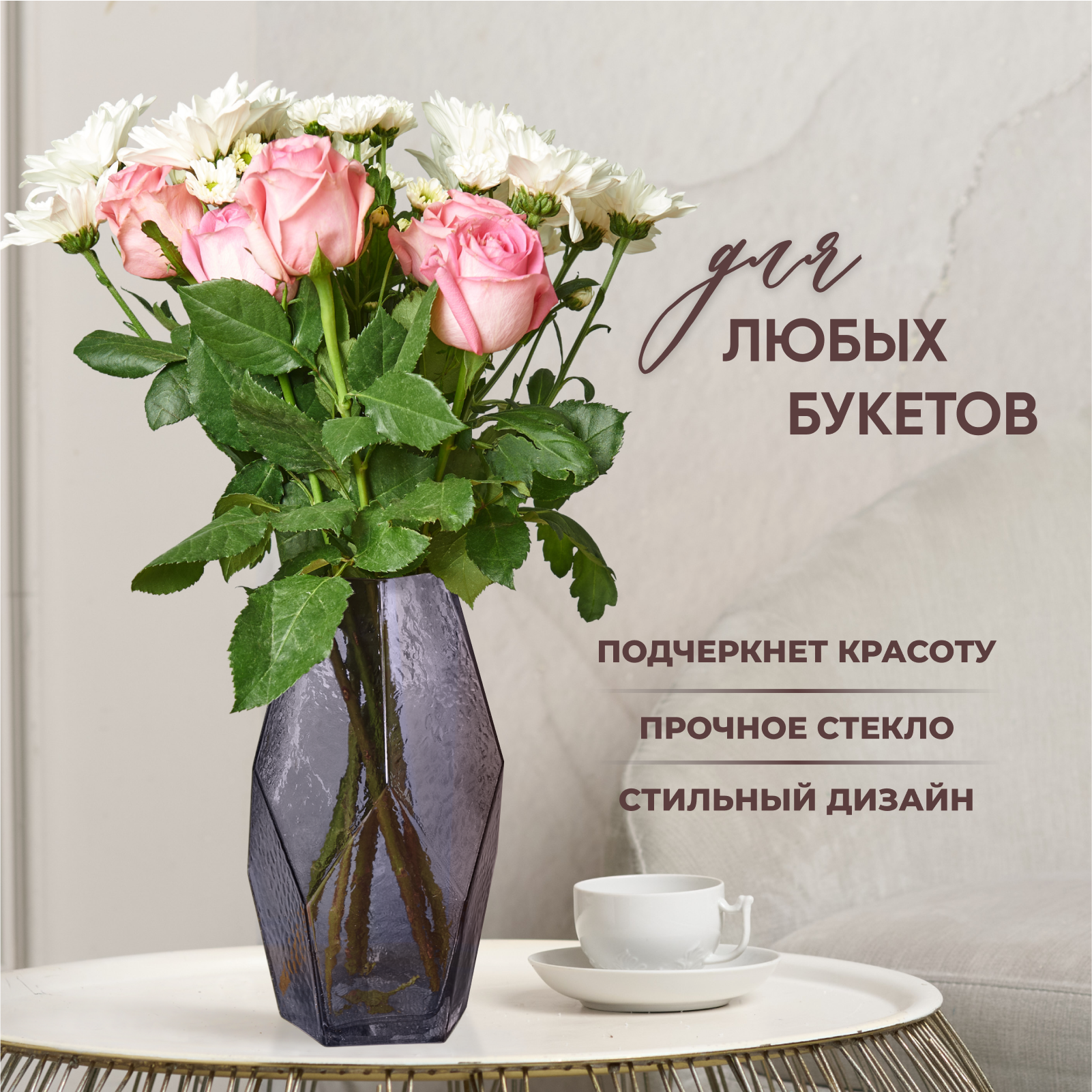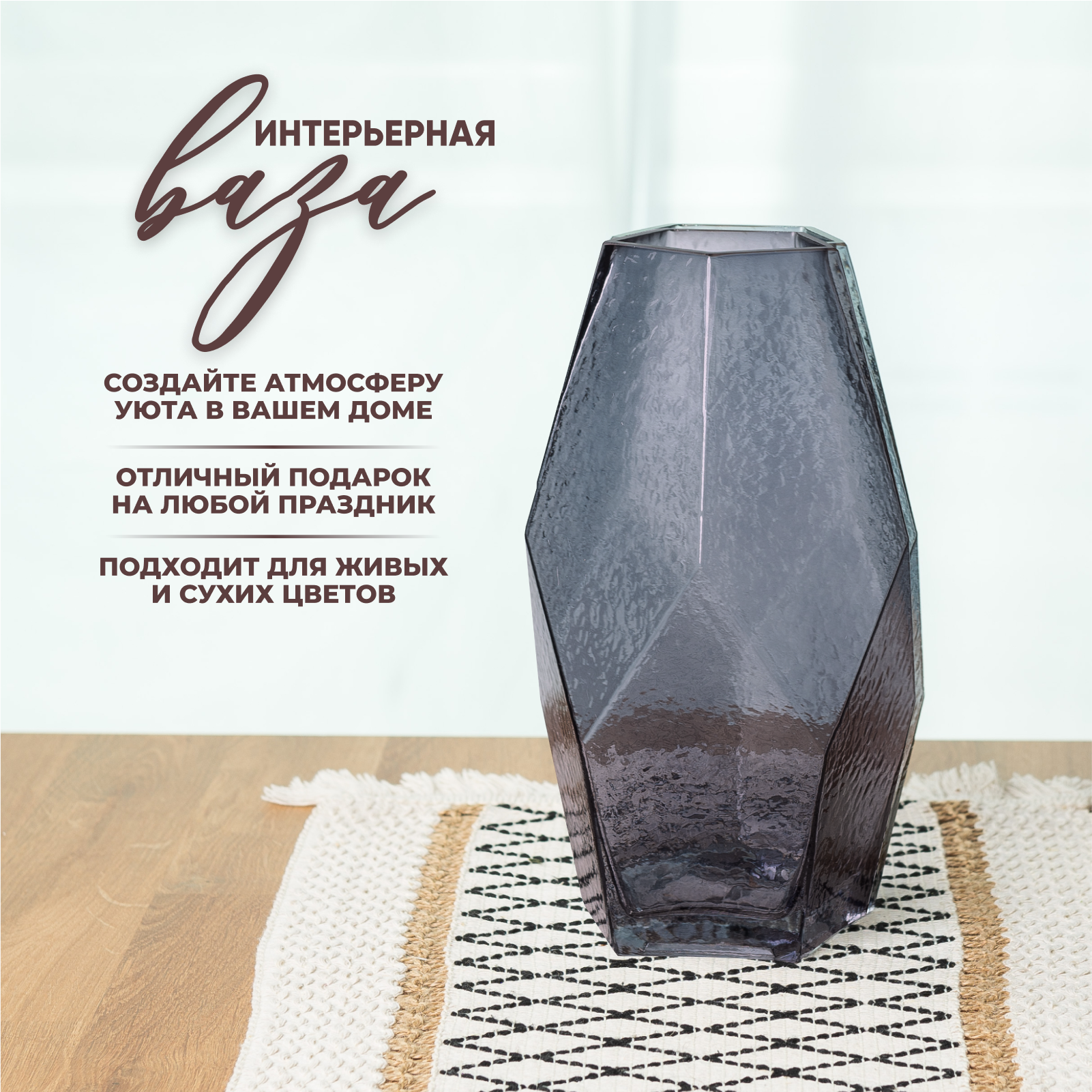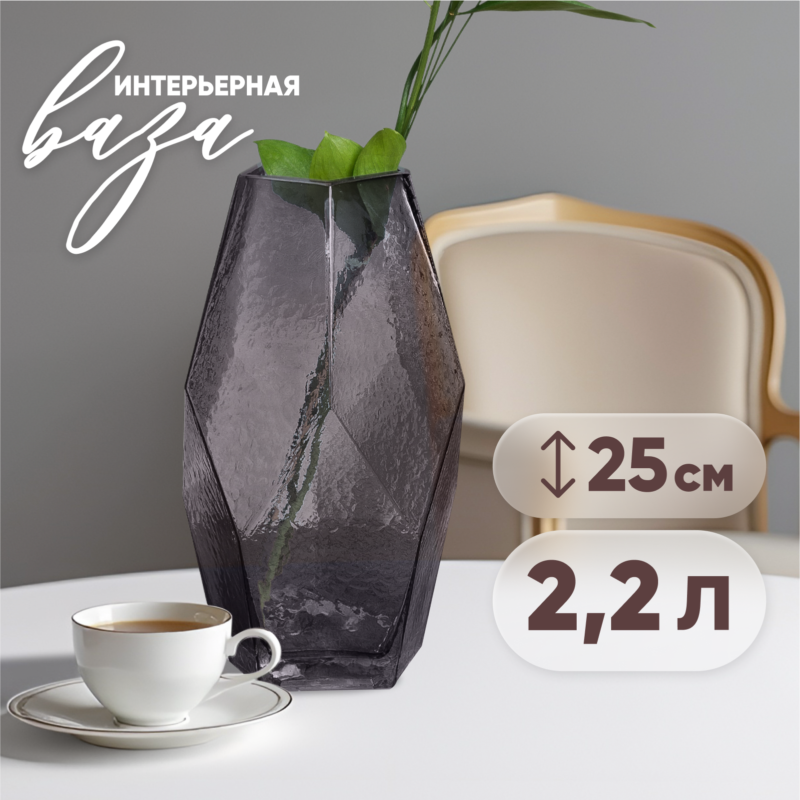 Ваза для цветов и сухоцветов высокая, стеклянная интерьерная 2 л, 27 см, цвет серый