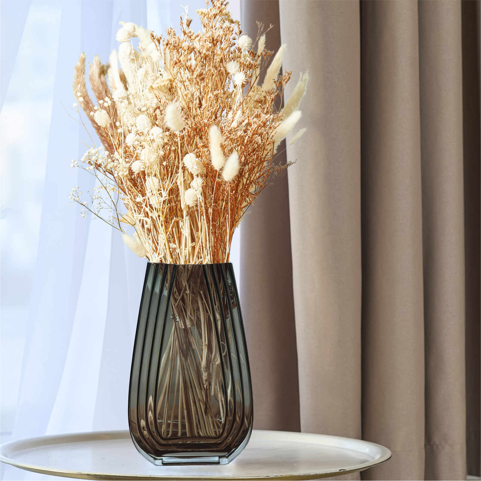 Ваза для цветов и сухоцветов высокая, стеклянная интерьерная 2 л, 27 см, цвет серый