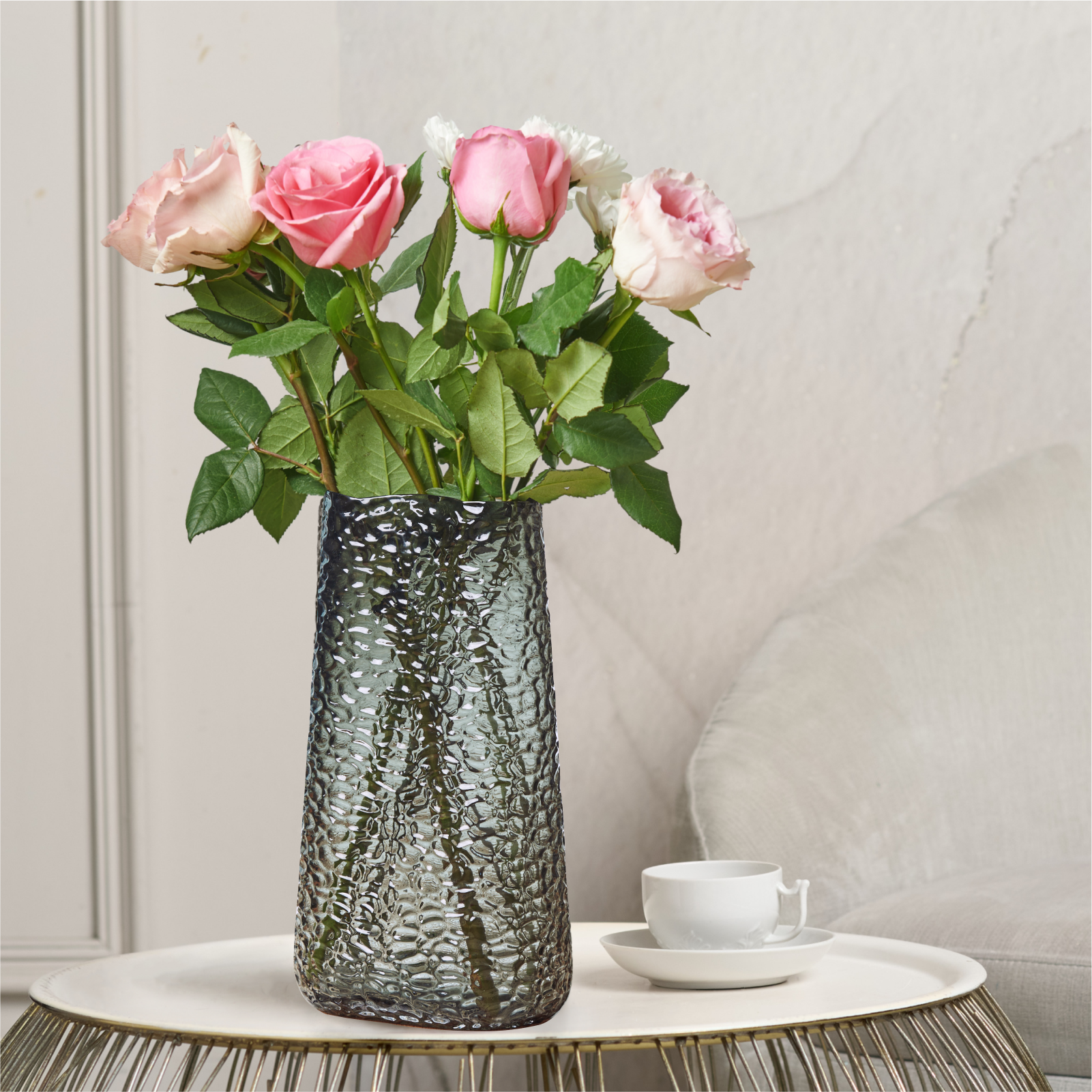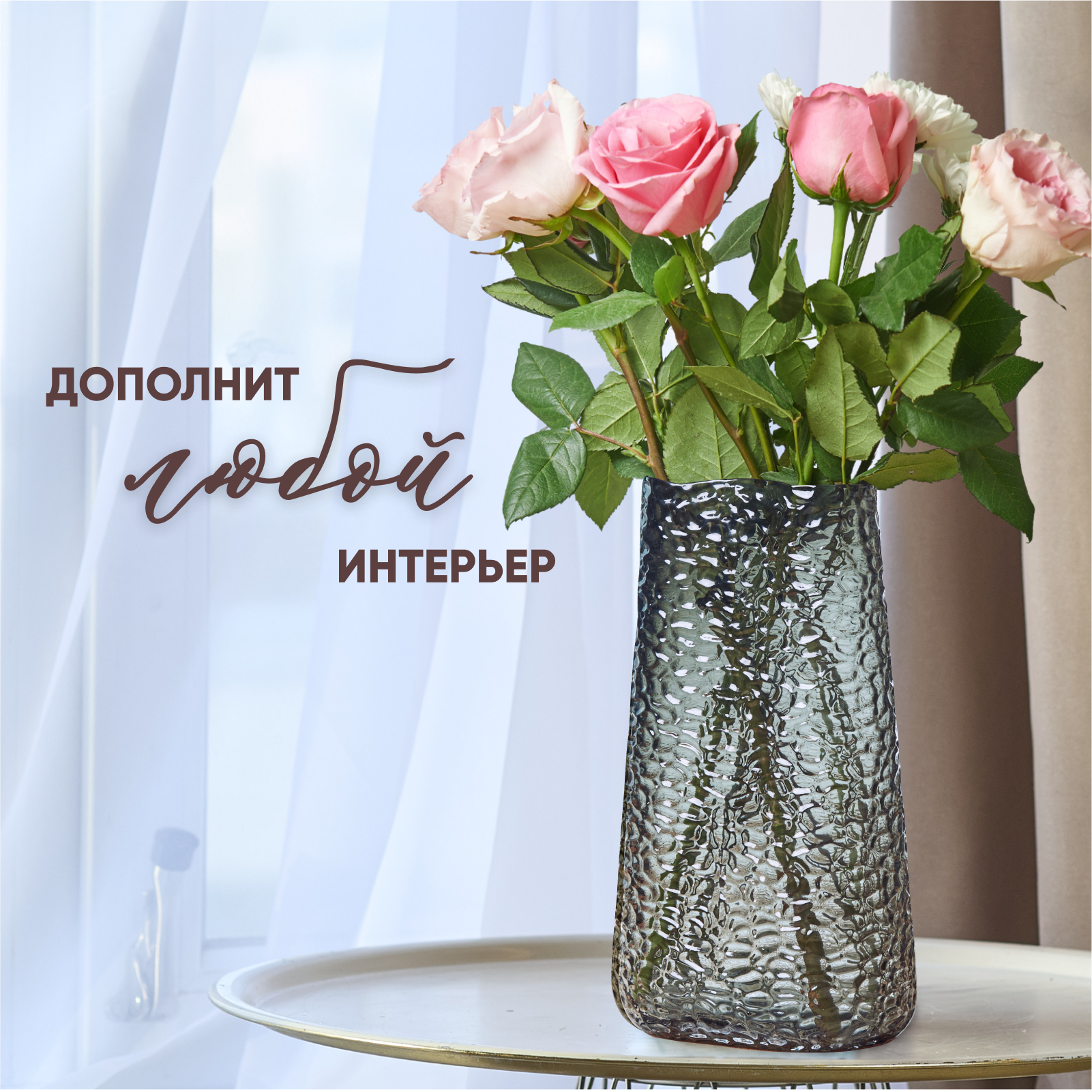 Купить Ваза для цветов и сухоцветов высокая, стеклянная интерьерная 2 л, 27 см, серая