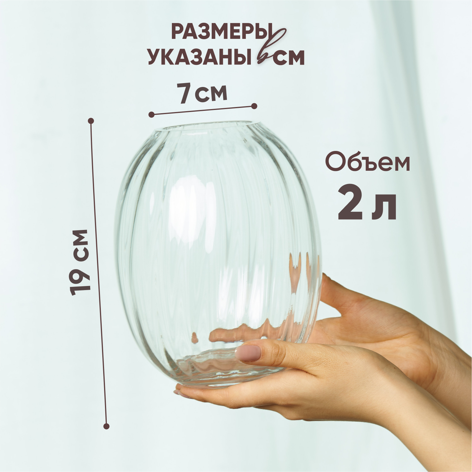 Ваза для цветов и сухоцветов стеклянная декоративная 2.3 литра