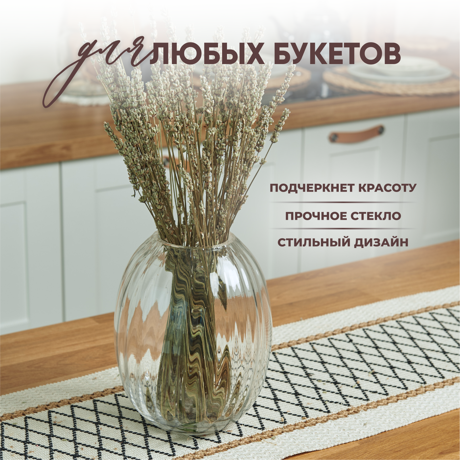 Ваза для цветов и сухоцветов стеклянная декоративная интерьерная прозрачная 2,5 л