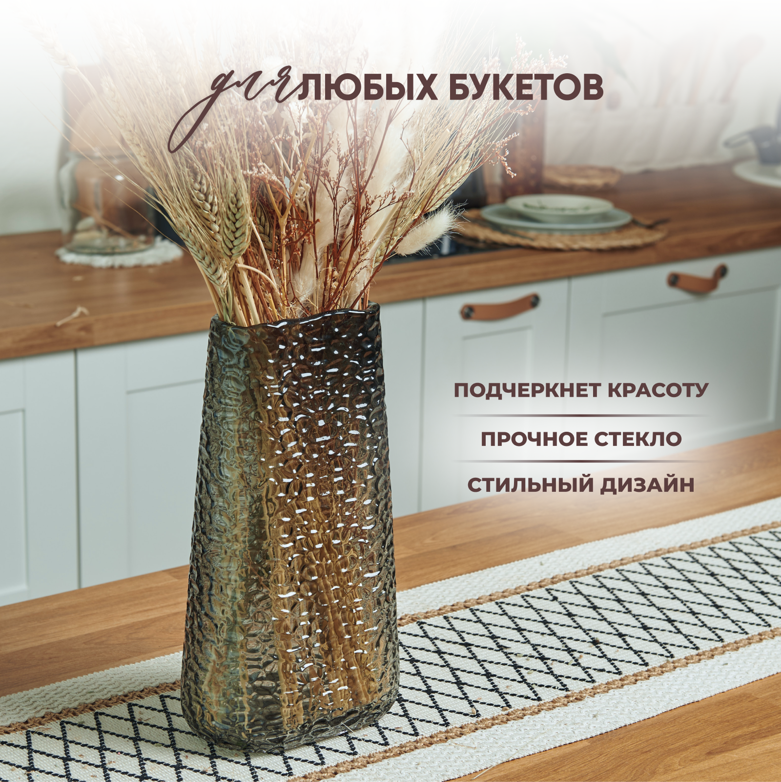 Купить Ваза для цветов и сухоцветов высокая, стеклянная интерьерная 2 л, 27 см, цвет серый