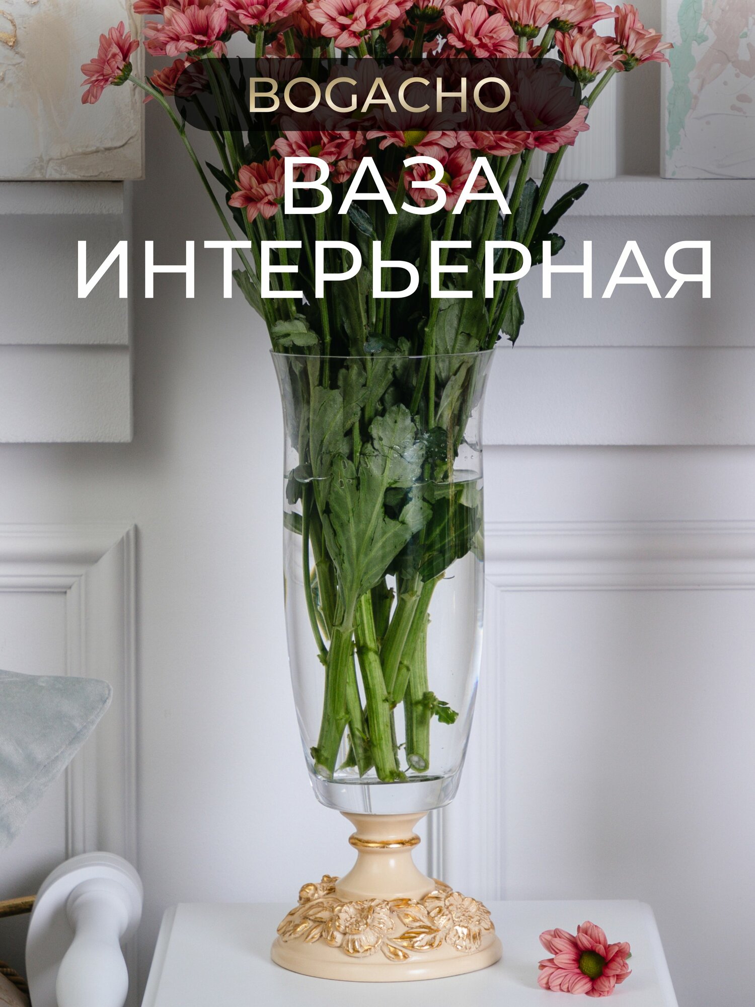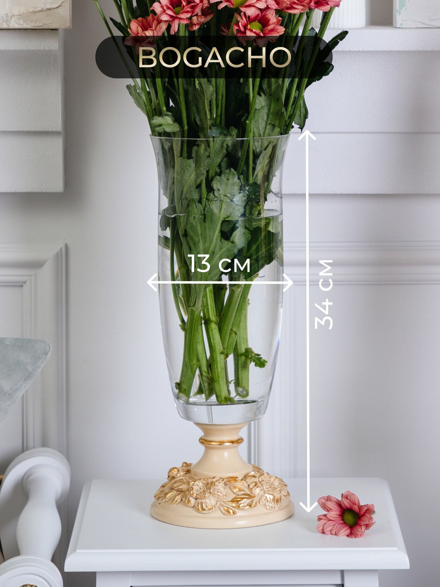 СохранитьПрозрачная настольная ваза Bogacho Лето из стекла на декоративной ножке для букетов, высоких цветов и сухоцветов интересное: