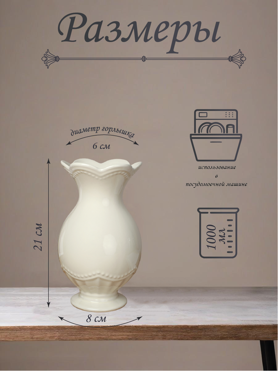 Ваза для цветов и сухоцветов, 21 см,1000 мл, керамика, кремовая интересное: