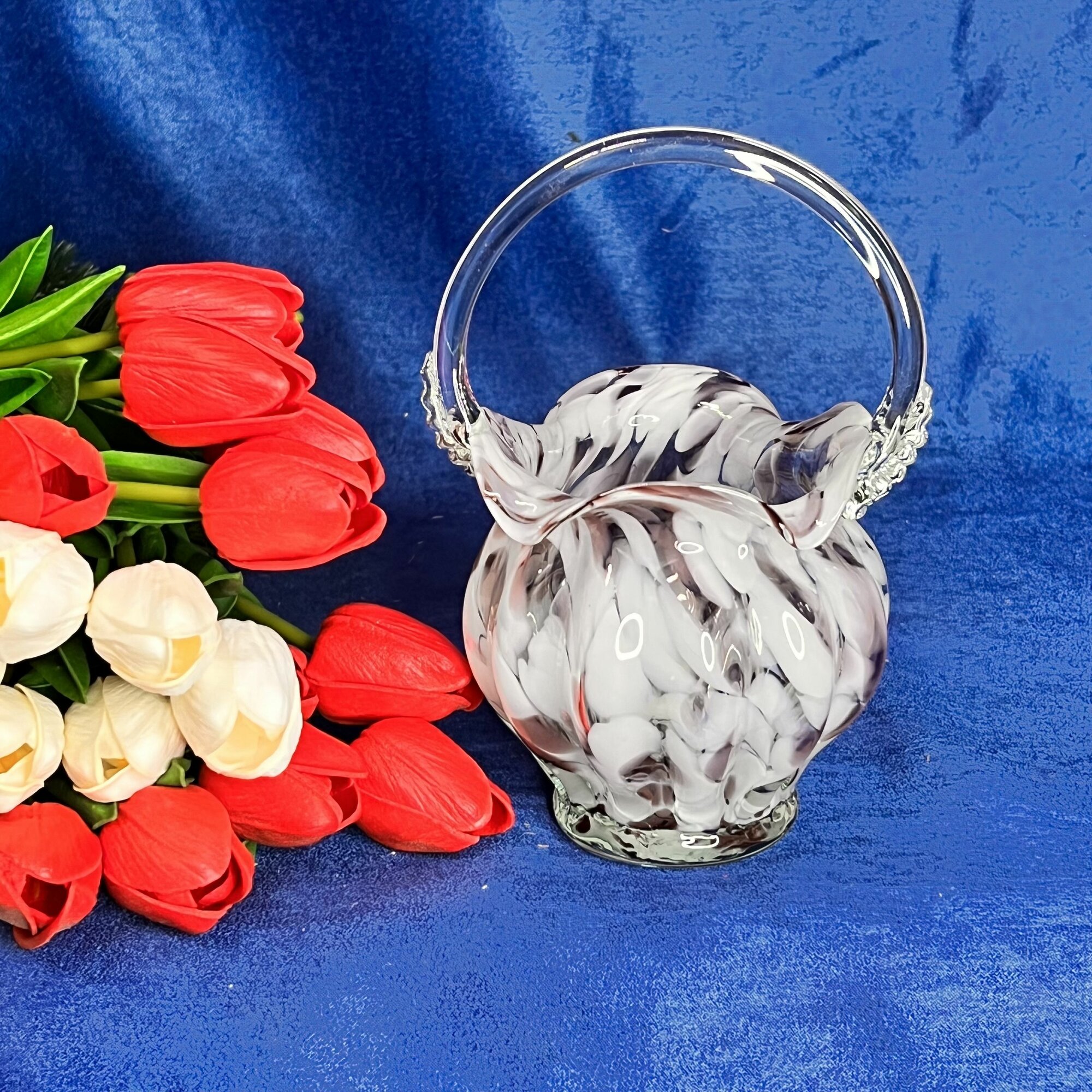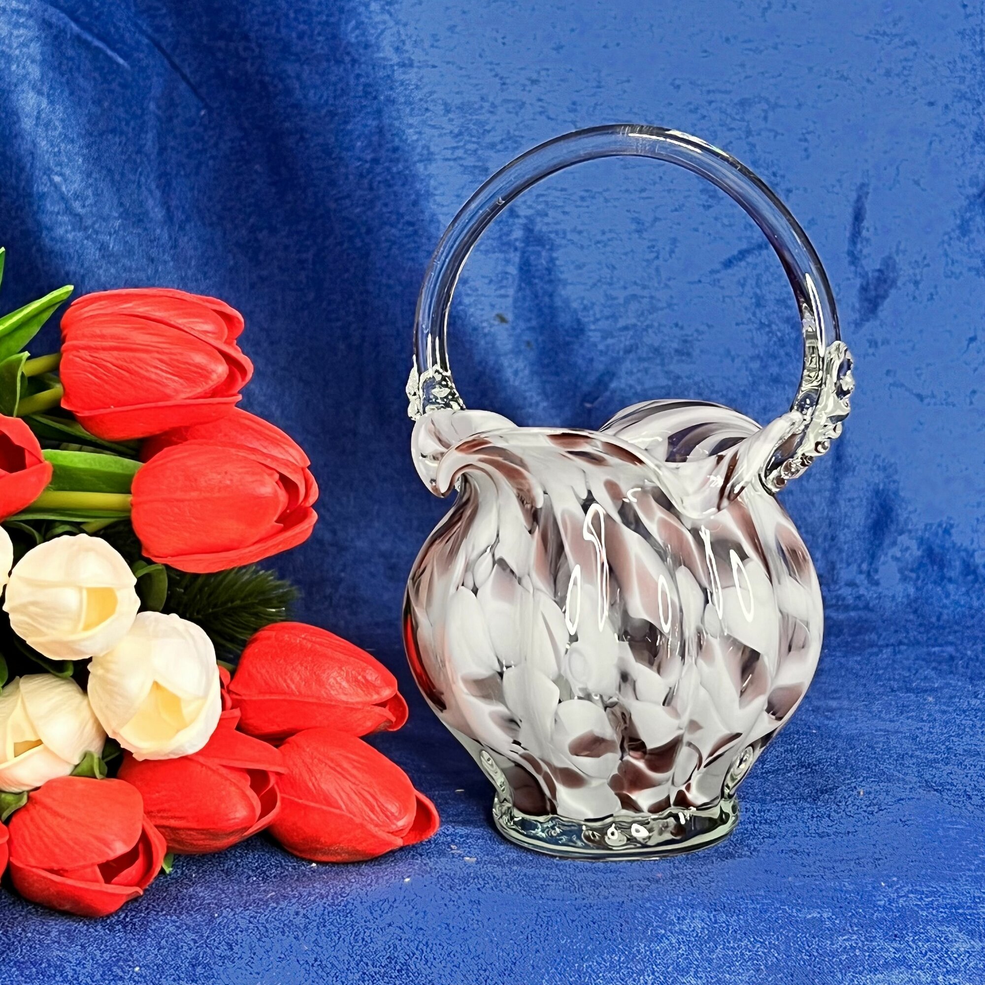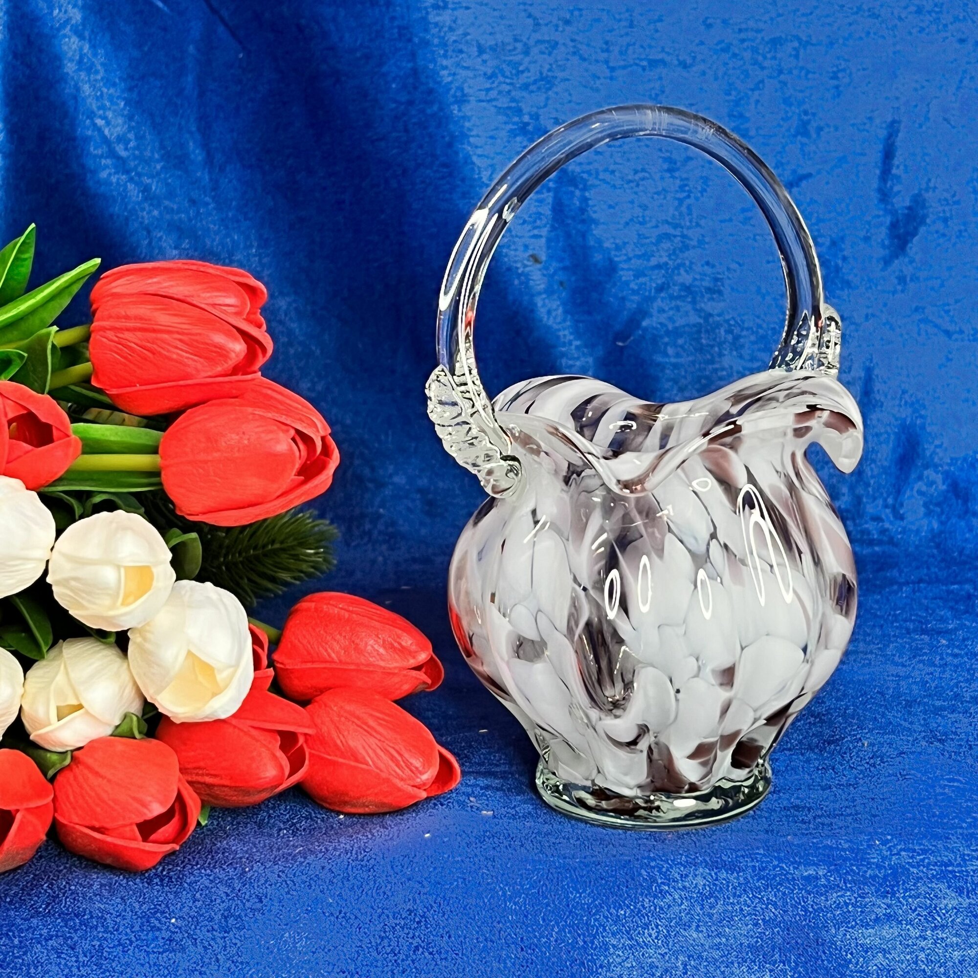 Ваза "Корзинка" из цветного стекла Белая 22 см