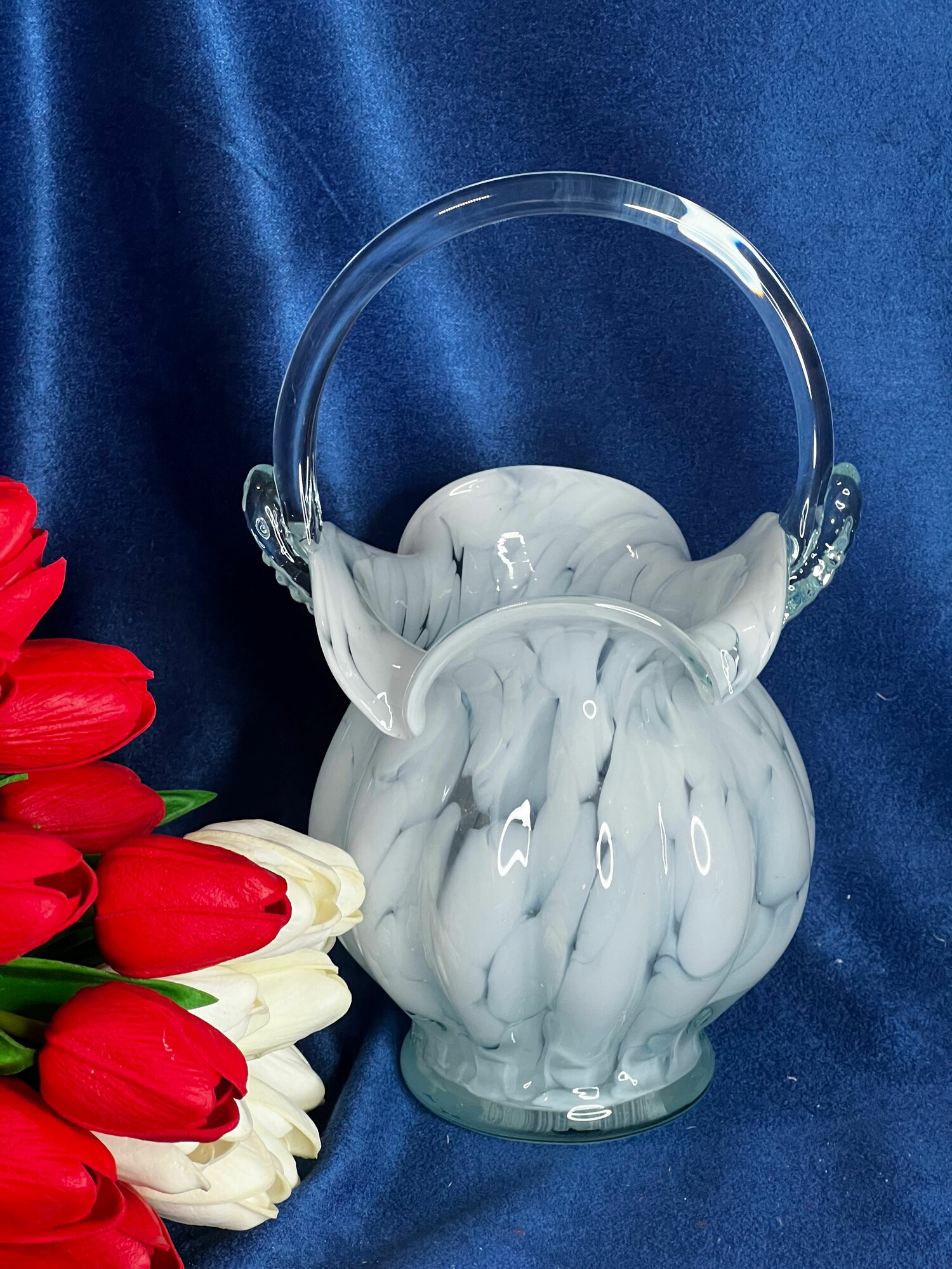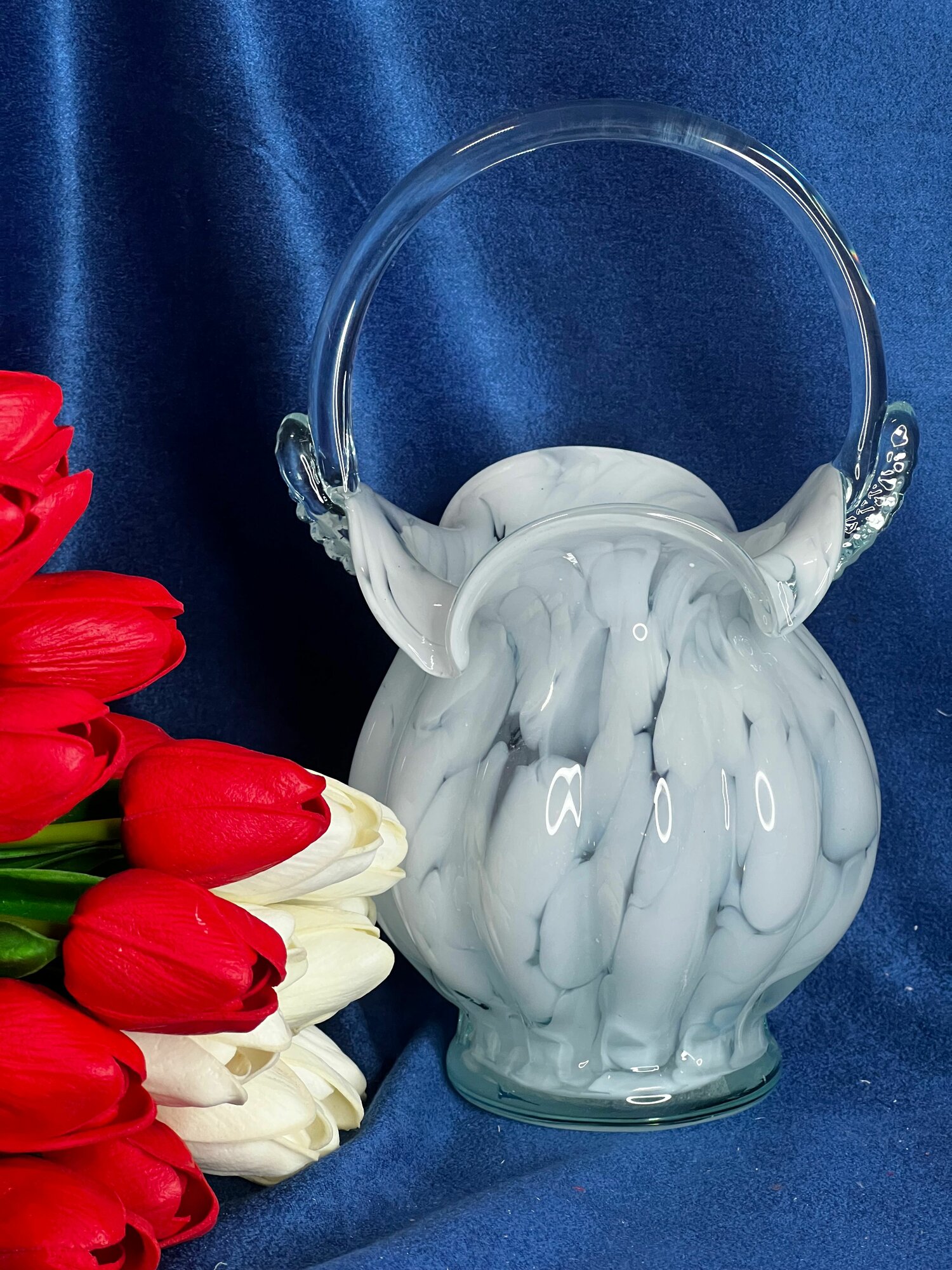 Купить Ваза "Корзинка" из цветного стекла Белая 22 см