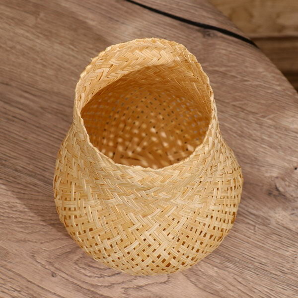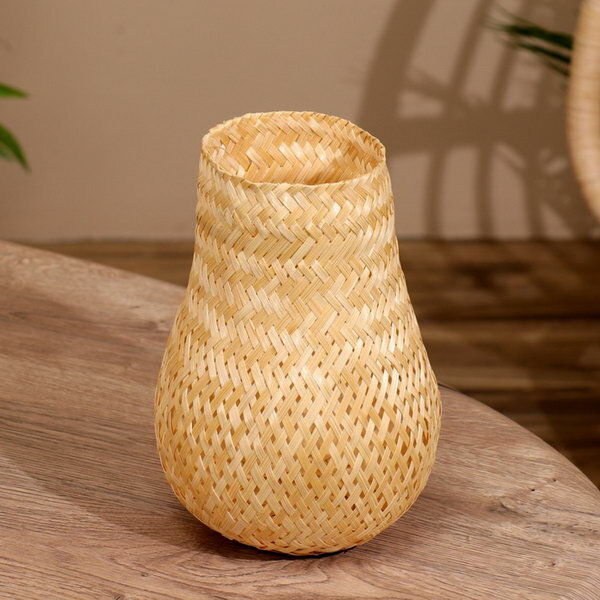 Купить Вазочка, 15x15x18 см, плетёная, бвмбук, цвет: бежевый, вид вазы: настольная
