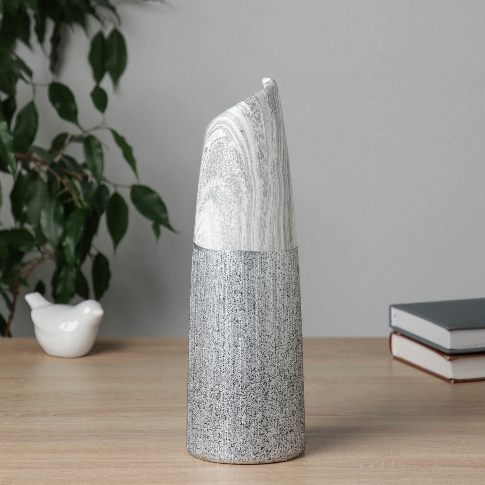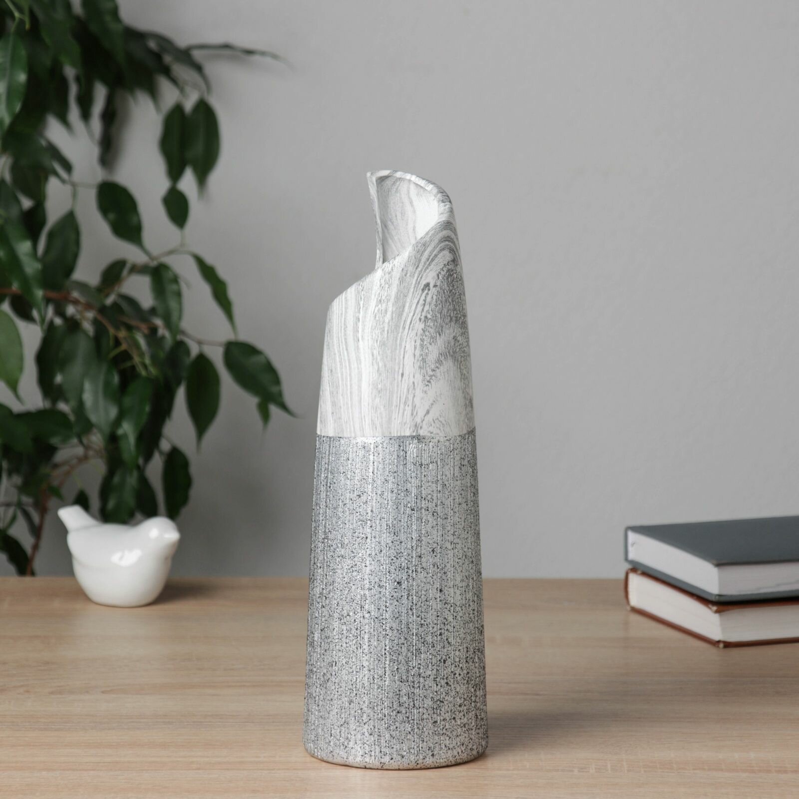 Керамическая ваза для цветов, сухоцветов Бригэм талия, настольная, d-12.5 см, h-29.5 11 см, бело-серый