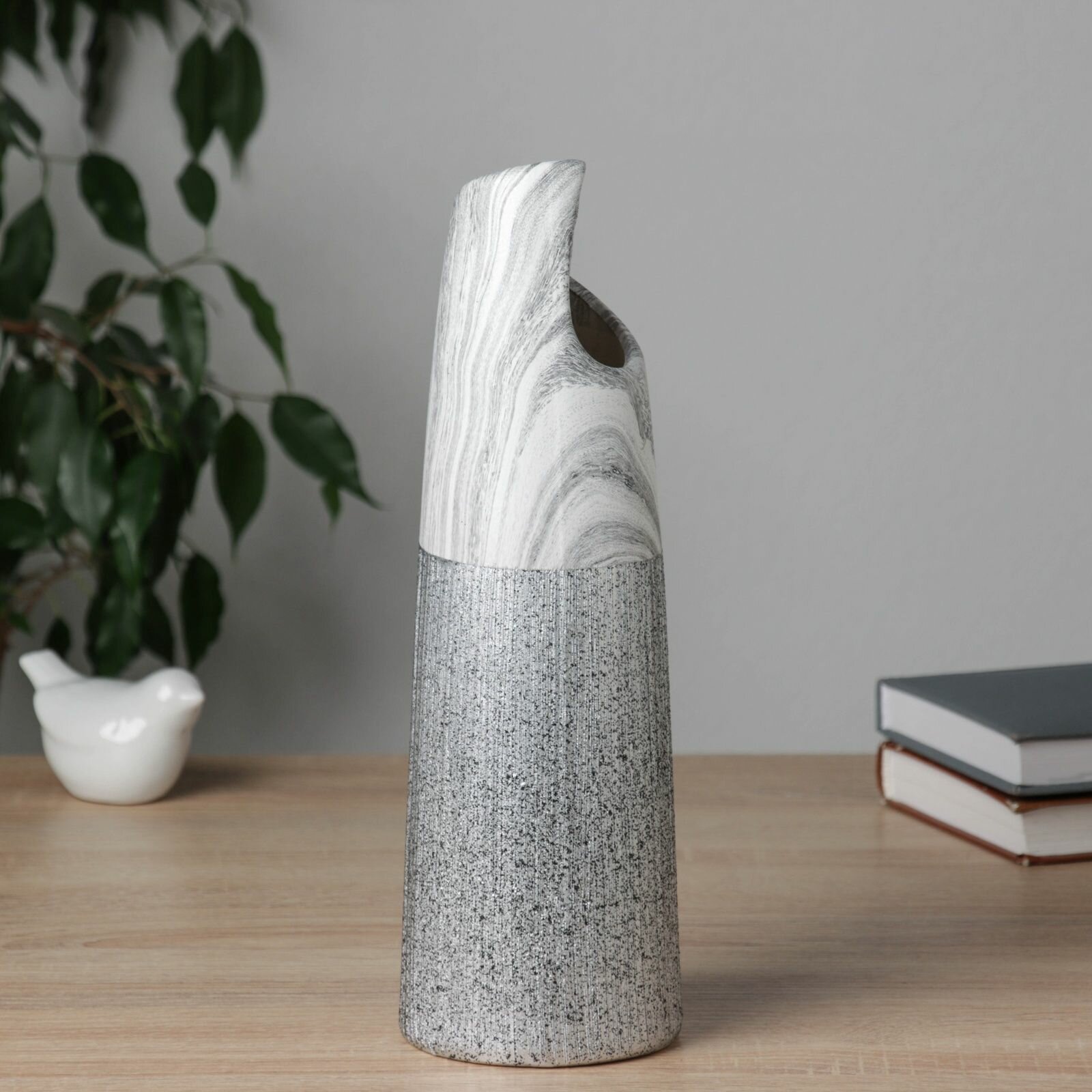 Керамическая ваза декоративная настольная Шейн , для цветов, сухоцветов, d отв.- 3 см, 19 15 см, серебро