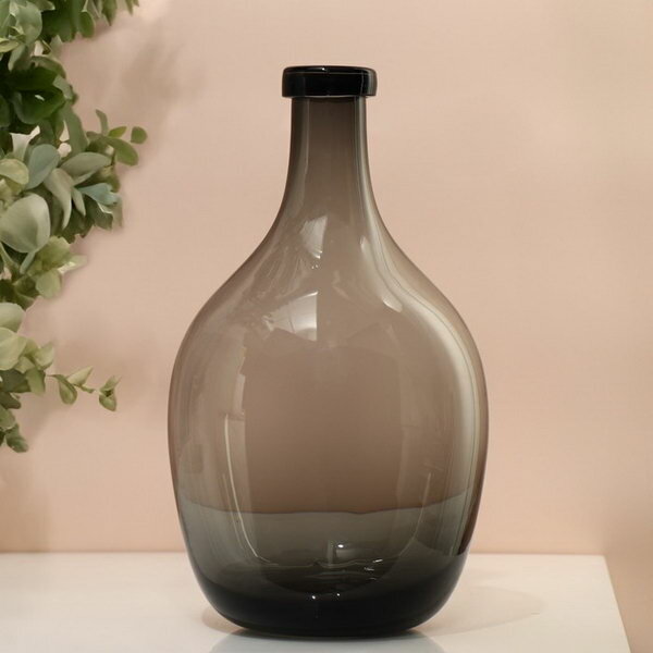Купить Ваза для цветов бутыль "Суромна" из прозрачного серого стекла 28.5x16x16 см